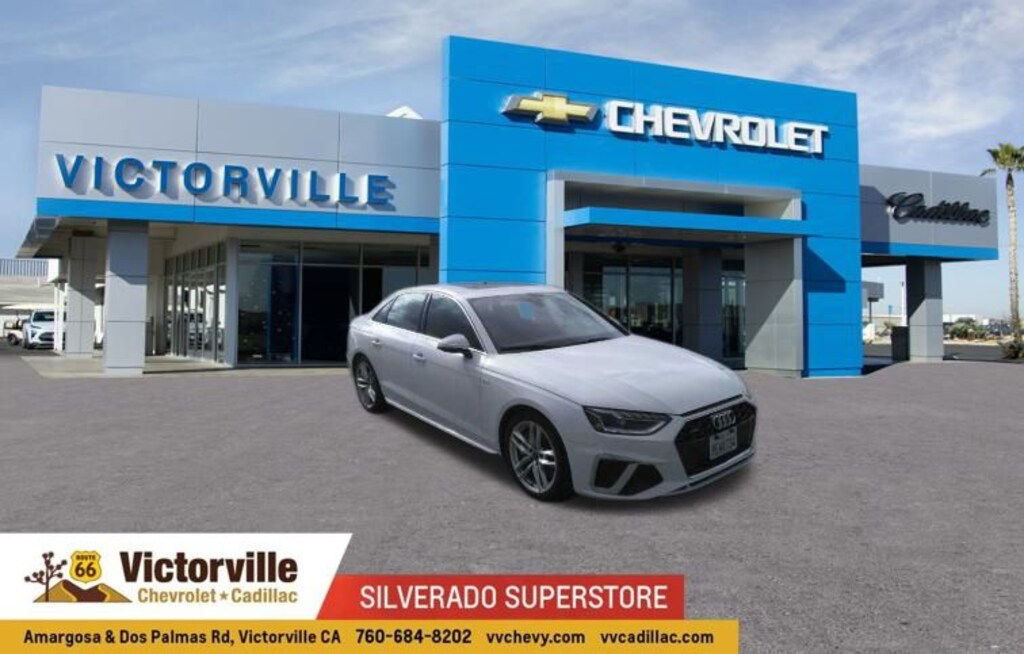 A4 45 S line Premium Plus quattro, 4D Sedan, 2.0L TFSI, 7-Speed Automatic S tronic, quattro, Ibis White, Black Leather, 10 Speakers, 4-Wheel Disc Brakes, ABS brakes, Air Conditioning, Alloy wheels, AM/FM radio, Anti-whiplash front head restraints, Audi smartphone interface (Apple CarPlay/Android Auto), Auto High-beam Headlights, Auto-dimming Rear-View mirror, Automatic temperature control, Brake assist, Bumpers: body-color, Compass, Delay-off headlights, Driver door bin, Driver vanity mirror, Dual front impact airbags, Dual front side impact airbags, Electronic Stability Control, Emergency communication system: Audi connect CARE, Exterior Parking Camera Rear, Four wheel independent suspension, Front anti-roll bar, Front Bucket Seats, Front Center Armrest, Front dual zone A/C, Front fog lights, Front reading lights, Garage door transmitter: HomeLink, Genuine wood dashboard insert, Genuine wood door panel insert, Heated door mirrors, Heated front seats, Heated Front Sport Bucket Seats, Illuminated entry, Knee airbag, Leather Seating Surfaces, Leather Shift Knob, Leather steering wheel, Low tire pressure warning, Occupant sensing airbag, Outside temperature display, Overhead airbag, Overhead console, Panic alarm, Passenger door bin, Passenger vanity mirror, Power door mirrors, Power driver seat, Power moonroof, Power passenger seat, Power steering, Power windows, Radio data system, Radio: Audi Sound System, Rain sensing wipers, Rear air conditioning, Rear anti-roll bar, Rear reading lights, Rear seat center armrest, Rear window defroster, Remote keyless entry, Speed control, Speed-sensing steering, Speed-Sensitive Wipers, Split folding rear seat, Steering wheel mounted audio controls, Tachometer, Telescoping steering wheel, Tilt steering wheel, Traction control, Trip computer, Turn signal indicator mirrors, Variably intermittent wipers, and Wheels: 18" 5-Double-Spoke Design.