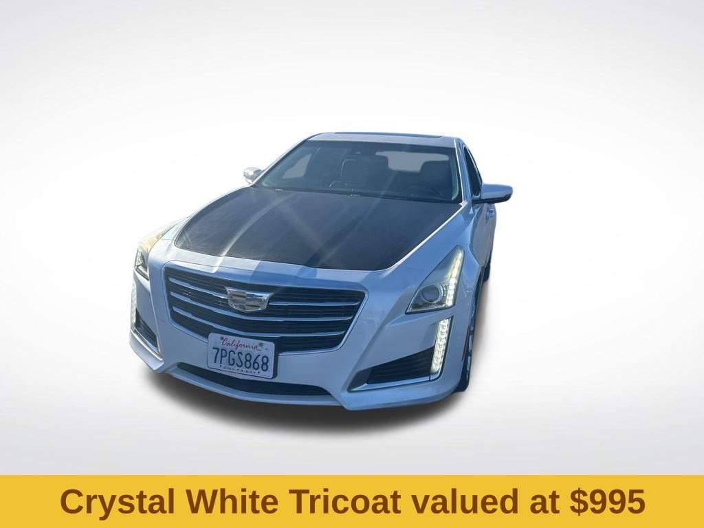 Driver Awareness Package (Forward Collision Alert, IntelliBeam Headlamps, Lane Change Alert, Lane Departure Warning System, Lane Keep Assist, Rainsense Wipers, Rear Cross Traffic Alert, Rear Vision Camera, and Side Blind Zone Alert), Preferred Equipment Group 1SE (High-Intensity Discharge Headlamps and UltraView Power Sunroof), Seating Package (Heated Driver & Front Passenger Seats, Heated Steering Wheel Rim, Heated/Ventilated Driver & Front Passenger Seats, LED Accent Lighting, Outside Heated Power-Adjustable Mirrors, Power Tilt & Telescoping Steering Column, and Split-Folding Rear Seat), CTS 2.0L Turbo Luxury, 4D Sedan, 2.0L Turbo I4 DI DOHC VVT, 6-Speed Automatic, RWD, Crystal White Tricoat, Light Platinum With Jet Black Accents Leather, 13 Speakers, 4-Wheel Disc Brakes, ABS brakes, Air Conditioning, Alloy wheels, AM/FM radio: SiriusXM, Anti-whiplash front head restraints, Auto High-beam Headlights, Auto-dimming door mirrors, Auto-dimming Rear-View mirror, Automatic temperature control, Bose Centerpoint Surround Sound 13-Speaker System, Brake assist, Bumpers: body-color, Compass, Delay-off headlights, Driver door bin, Driver vanity mirror, Dual front impact airbags, Dual front side impact airbags, Electronic Stability Control, Emergency communication system: OnStar Directions & Connections, Exterior Parking Camera Rear, Four wheel independent suspension, Front anti-roll bar, Front Bucket Seats, Front Center Armrest w/Storage, Front dual zone A/C, Front License Plate Bracket, Front reading lights, Fully automatic headlights, Garage door transmitter, Genuine wood console insert, Genuine wood dashboard insert, Genuine wood door panel insert, Heated door mirrors, Heated front seats, Heated steering wheel, High-Intensity Discharge Headlights, Illuminated entry, Knee airbag, Leather Seating Surfaces, Leather Shift Knob, Leather steering wheel, Low tire pressure warning, Memory seat, Navigation System, Occupant sensing airbag, Outside temperature display, Overhead airbag, Panic alarm, Passenger door bin, Passenger vanity mirror, Power door mirrors, Power driver seat, Power moonroof: UltraView, Power passenger seat, Power steering, Power windows, Premium audio system: Cadillac CUE, Radio data system, Radio: Cadillac CUE Info/Media Cont/Embedded Nav, Rain sensing wipers, Rear anti-roll bar, Rear reading lights, Rear seat center armrest, Rear side impact airbag, Rear window defroster, Remote keyless entry, Security system, SiriusXM & HD Radio, Speed control, Speed-sensing steering, Split folding rear seat, Steering wheel mounted audio controls, Tachometer, Telescoping steering wheel, Tilt steering wheel, Traction control, Trip computer, Turn signal indicator mirrors, Variably intermittent wipers, Ventilated front seats, Voltmeter, and Wheels: 17" x 8.5" Ultra-Bright Machined Finish.