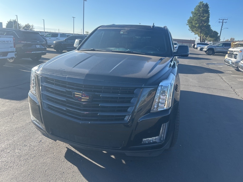 Driver Assist Package (Adaptive Full-Speed Range Cruise Control, Automatic Safety Belt Tightening, Forward Collision Alert, Front & Rear Automatic Braking, IntelliBeam Headlamps, and Lane Keep Assist), Platinum Package (Cooled Console w/Covered Storage, Dual DVD Screens, Leather Wrapped IP/Console/Door, Microfiber Sueded Headliner, Platinum Sill Plates, Premium Floor Mats, Unique Exotic Wood, and Unique Grille Design), Preferred Equipment Group 1SD (Electronic Powered Parking Brake, Illuminated Door Handles, Power Tilt-Sliding Sunroof w/Express-Open/Close, Rear Cross-Traffic Alert, Rear Seat Entertainment System, Reconfigurable 4-Color Head-Up Display, Second Row Bucket Seats, Side Blind Zone Alert, and VAC Power 17" Disc Brakes), Theft-Deterrent Package (Theft-Deterrent Alarm System, Vehicle Inclination Sensor, and Vehicle Interior Movement Sensor), Escalade Platinum Edition, 4D Sport Utility, Vortec 6.2L V8 SIDI, 8-Speed Automatic, 4WD, Black Raven, Jet Black With Jet Black Accents Leather, 16 Speakers, 1st 2nd & 3rd Row Floor Mats (LPO), 2nd Row Pwr Config 60/40 Split Folding Bench Seat, 3.23 Axle Ratio, 3rd row seats: split-bench, 4-Wheel Disc Brakes, A/V remote, ABS brakes, Adaptive suspension, Additional Rear Seat Headphones (LPO), Adjustable pedals, Air Conditioning, Alloy wheels, AM/FM radio: SiriusXM, Apple CarPlay, Auto High-beam Headlights, Auto tilt-away steering wheel, Auto-dimming door mirrors, Auto-dimming Rear-View mirror, Auto-leveling suspension, Automatic temperature control, Black Front License Plate Bracket, Bodyside moldings, Bose Centerpoint Surround Sound System, Brake assist, Bumpers: body-color, CD player, Chrome Exhaust Tip, Compass, Delay-off headlights, Driver door bin, Driver vanity mirror, Dual front impact airbags, Dual front side impact airbags, DVD-Audio, Electronic Stability Control, Emergency communication system: OnStar, Exterior Parking Camera Rear, Front anti-roll bar, Front Bucket Seats, Front Center Armrest w/Storage, Front dual zone A/C, Front reading lights, Front wheel independent suspension, Fully automatic headlights, Garage door transmitter, Genuine wood dashboard insert, HD Radio, Headphones, Heads-Up Display, Heated & Cooled Front Bucket Seats, Heated door mirrors, Heated front seats, Heated rear seats, Heated steering wheel, Illuminated entry, Lane Departure Warning System, Leather Shift Knob, Leather steering wheel, Low tire pressure warning, Magnetic Ride Control Suspension, Memory seat, Navigation System, NavTraffic, Occupant sensing airbag, Outside temperature display, Overhead airbag, Overhead console, Panic alarm, Passenger door bin, Passenger vanity mirror, Pedal memory, Power door mirrors, Power driver seat, Power Liftgate, Power moonroof, Power passenger seat, Power steering, Power windows, Power-Retractable Assist Steps, Radio data system, Radio: Cadillac CUE Info/Media Ctrl Sys w/Embd Nav, Rain sensing wipers, Rear air conditioning, Rear anti-roll bar, Rear audio controls, Rear reading lights, Rear window defroster, Rear window wiper, Remote keyless entry, Roof rack: rails only, Security system, Semi-Aniline Nappa Leather Seat Trim, SiriusXM Satellite Radio, Speed control, Split folding rear seat, Spoiler, Steering wheel memory, Steering wheel mounted audio controls, Tachometer, Telescoping steering wheel, Tilt steering wheel, Traction control, Trip computer, Turn signal indicator mirrors, Variably intermittent wipers, Ventilated front seats, and Wheels: 22" x 9" Premium Painted w/Chrome Inserts.
