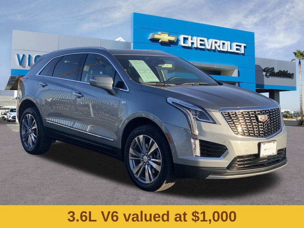 Premium Luxury Package 1SC (Automatic Dual-Zone Climate Control, Automatic Emergency Braking, Dual Driver Info Center Display Gauge Cluster, Front & Rear Park Assist, HD Rear Vision Camera, Inside Rear-View Auto-Dimming Mirror, and Teen Driver), Radio: Cadillac User Experience w/Embedded Nav (Bose Performance Series 14-Speaker System, SiriusXM w/360L Trial Subscription, Wireless Apple CarPlay/Wireless Android Auto, and Wireless Phone Charging), XT5 Premium Luxury Certified, 4D Sport Utility, 3.6L V6 DI VVT, 9-Speed Automatic, FWD, Argent Silver Metallic, Black Leather, 14 Speakers, 155 Amp Alternator, 2-Way Power Driver Lumbar Control Seat Adjuster, 2-Way Power Passenger Lumbar Control Seat Adjuster, 4-Wheel Disc Brakes, 4-Wheel Independent Suspension, ABS brakes, Air Conditioning, Alloy wheels, AM/FM radio: SiriusXM, Audio memory, Auto High-beam Headlights, Auto-dimming door mirrors, Auto-dimming Rear-View mirror, Automatic Stop/Start w/Disable, Automatic temperature control, Bodyside moldings, Brake assist, Bumpers: body-color, Compass, Delay-off headlights, Deleted 3 Years of OnStar Digital Services, Driver door bin, Driver vanity mirror, Dual front impact airbags, Dual front side impact airbags, Electronic Stability Control, Emergency communication system: OnStar and Cadillac connected services capable, Four wheel independent suspension, Front anti-roll bar, Front Bucket Seats, Front Center Armrest, Front dual zone A/C, Front License Plate Bracket, Front reading lights, Fully automatic headlights, Garage door transmitter, Genuine wood dashboard insert, Genuine wood door panel insert, Heated door mirrors, Heated Driver & Front Passenger Seats, Heated front seats, Heated steering wheel, Illuminated entry, Knee airbag, Leather Seating Surfaces w/Mini Perforated Inserts, Low tire pressure warning, Memory seat, Navigation System, Occupant sensing airbag, Outside temperature display, Overhead airbag, Overhead console, Panic alarm, Passenger door bin, Passenger vanity mirror, Power door mirrors, Power driver seat, Power Liftgate, Power moonroof: UltraView, Power passenger seat, Power steering, Power windows, Radio data system, Rain sensing wipers, Rear anti-roll bar, Rear reading lights, Rear seat center armrest, Rear window defroster, Rear window wiper, Remote keyless entry, Security system, Speed control, Speed-sensing steering, Split folding rear seat, Spoiler, Steering wheel memory, Steering wheel mounted audio controls, Tachometer, Telescoping steering wheel, Tilt steering wheel, Traction control, Trip computer, Turn signal indicator mirrors, Variably intermittent wipers, Voltmeter, and Wheels: 20" 6-Split Spoke Alloy.