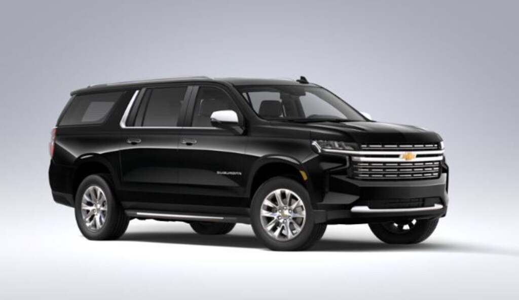 Advanced Trailering Package (Advanced Trailering System, Hitch Guidance w/Hitch View, Integrated Trailer Brake Controller, and Trailer Side Blind Zone Alert), Enhanced Display & Alert Package (15" Diagonal Multi-Color Head-Up Display, HD Surround Vision, Inside Rearview Auto-Dimming Rear Camera Mirror, Rear Camera Mirror Washer, and Rear Pedestrian Alert), License Plate Front Mounting Package, Max Trailering Package (Extra Capacity Cooling System), Preferred Equipment Group 1LZ (12-Way Power Driver & Passenger Seat Adjusters, 1st & 2nd Row Color-Keyed Carpeted Floor Mats, 2 USB Data Ports, 3rd Row 60/40 Power-Folding Split-Bench, Auto-Dimming Inside Rear-View Mirror, Automatic Heated Steering Wheel, Bose 10-Speaker Surround w/CenterPoint, Bright Front & Rear Door Sill Plates, Chrome Door Handles w/Body-Color Strip, Chrome Mirror Caps, Color-Keyed Carpeting Floor Covering, Driver & Front Outboard Passenger Airbags, Dual Exhaust System, Enhanced Driver Information Center, Floor Console w/Storage Area, Front & Rear Park Assist, Hands-Free Rear Power Programmable Liftgate, HD Radio, Heated & Ventilated Driver & Front Passenger Seats, Heated 2nd Row Outboard Seats, Heated Driver & Front Passenger Seats, Infotainment Display, Lane Change Alert w/Side Blind Zone Alert, Lane Keep Assist w/Lane Departure Warning, Leather-Wrapped Steering Wheel, LED Daytime Running Lamps, Memory Settings, Outside Heated Power-Adjustable Mirrors, Power Release 2nd Row Bucket Seats, Power Tilt & Telescopic Steering Column, Rear Cross Traffic Alert, Remote Start, Safety Alert Seat, SiriusXM Radio w/360L, and Universal Home Remote), Premium Package (Adaptive Cruise Control, Dual-Pane Power Panoramic Sunroof, and Enhanced Automatic Emergency Braking), Suburban Premier, 4D Sport Utility, EcoTec3 5.3L V8, 10-Speed Automatic with Overdrive, RWD, Black, Jet Black Leather, 10 Speakers, 20" x 9" Polished Aluminum Wheels, 3.23 Rear Axle Ratio, 3rd row seats: split-bench, 4-Wheel Disc Brakes, ABS brakes, Adaptive suspension, Air Conditioning, Alloy wheels, AM/FM radio: SiriusXM with 360L, Apple CarPlay/Android Auto, Auto High-beam Headlights, Auto-dimming door mirrors, Auto-dimming Rear-View mirror, Auto-leveling suspension, Automatic temperature control, Brake assist, Bumpers: body-color, Compass, Delay-off headlights, Driver door bin, Driver vanity mirror, Dual front impact airbags, Dual front side impact airbags, Electronic Stability Control, Emergency communication system: OnStar and Chevrolet connected services capable, Four wheel independent suspension, Front & Rear Black Bowtie Emblems (LPO), Front anti-roll bar, Front Bucket Seats, Front Center Armrest, Front dual zone A/C, Front reading lights, Fully automatic headlights, Garage door transmitter, Heated door mirrors, Heated front seats, Heated rear seats, Heated steering wheel, Illuminated entry, Leather steering wheel, Low tire pressure warning, Magnetic Ride Control Suspension, Memory seat, Navigation System, Occupant sensing airbag, Outside temperature display, Overhead airbag, Overhead console, Panic alarm, Passenger door bin, Passenger vanity mirror, Perforated Leather Seating Surfaces, Power door mirrors, Power driver seat, Power Liftgate, Power passenger seat, Power steering, Power windows, Premium audio system: Chevrolet Infotainment 3 Premium, Radio: Chevrolet Infotainment 3 Premium System, Rain sensing wipers, Rear air conditioning, Rear anti-roll bar, Rear reading lights, Rear window defroster, Rear window wiper, Remote keyless entry, Roof rack: rails only, Security system, Speed control, Speed-sensing steering, Split folding rear seat, Spoiler, Start/Stop System Disable Button, Ste