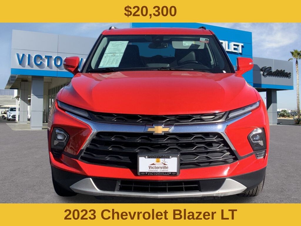 Driver Confidence Package (Lane Change Alert w/Side Blind Zone Alert, Rear Cross Traffic Alert, and Rear Park Assist w/Audible Warning), Preferred Equipment Group 3LT (6-Way Power Front Passenger Seat Adjuster, Black Roof-Mounted Side Rails, Heated Driver & Front Passenger Seats, Inside Rear-View Auto-Dimming Mirror, Outside Heated Power-Adjustable Body-Color Mirrors, Rear Power Programmable Liftgate, and Universal Home Remote), Blazer LT, 4D Sport Utility, 3.6L V6 SIDI, 9-Speed Automatic with Overdrive, FWD, Red Hot, Black Leather, 155 Amp Alternator, 170 Amp Alternator, 4-Wheel Disc Brakes, 6 Speakers, 6-Speaker Audio System Feature, 8-Way Power Driver Seat Adjuster, ABS brakes, Air Conditioning, Alloy wheels, AM/FM radio: SiriusXM with 360L, Apple CarPlay/Android Auto, Auto High-beam Headlights, Auto-dimming door mirrors, Auto-dimming Rear-View mirror, Automatic temperature control, Brake assist, Bumpers: body-color, Child-Seat-Sensing Airbag, Compass, Delay-off headlights, Deleted 3 Years of Remote Access, Driver door bin, Driver vanity mirror, Dual front impact airbags, Dual front side impact airbags, Electronic Stability Control, Emergency communication system: OnStar and Chevrolet connected services capable, Four wheel independent suspension, Front anti-roll bar, Front Bucket Seats, Front Center Armrest, Front dual zone A/C, Front reading lights, Fully automatic headlights, Garage door transmitter, Heated door mirrors, Heated front seats, Illuminated entry, Knee airbag, Leather Shift Knob, Low tire pressure warning, Not Equipped w/Rear Park Assist, Occupant sensing airbag, Outside temperature display, Overhead airbag, Overhead console, Panic alarm, Passenger door bin, Passenger vanity mirror, Perforated Leather-Appointed Seat Trim, Power door mirrors, Power Driver Lumbar Control, Power driver seat, Power Liftgate, Power passenger seat, Power steering, Power windows, Premium audio system: Chevrolet Infotainment 3 Plus, Radio data system, Radio: Chevrolet Infotainment 3 Plus System, Rear anti-roll bar, Rear reading lights, Rear seat center armrest, Rear window defroster, Rear window wiper, Remote keyless entry, Ride & Handling Suspension, Security system, SiriusXM w/360L, Speed control, Speed-sensing steering, Split folding rear seat, Spoiler, Steering wheel mounted audio controls, Tachometer, Telescoping steering wheel, Tilt steering wheel, Traction control, Trip computer, Turn signal indicator mirrors, Variably intermittent wipers, Voltmeter, and Wheels: 18" Grazen Metallic Aluminum.
