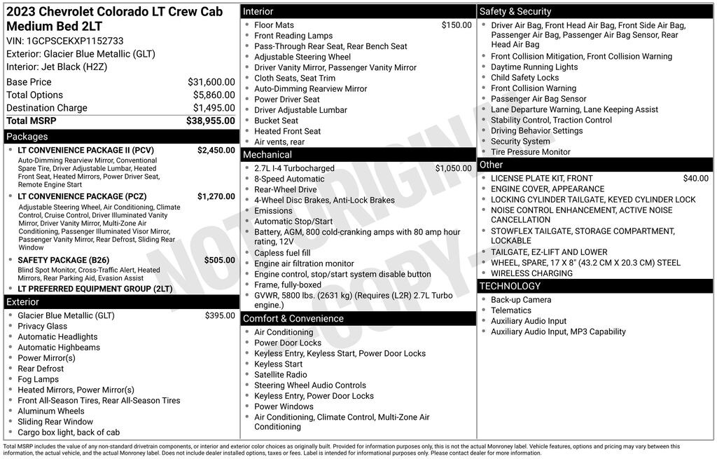 Glacier Blue Metallic 2023 Chevrolet Colorado LT RWD 8-Speed Automatic 2.7L Turbo