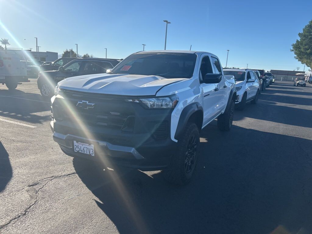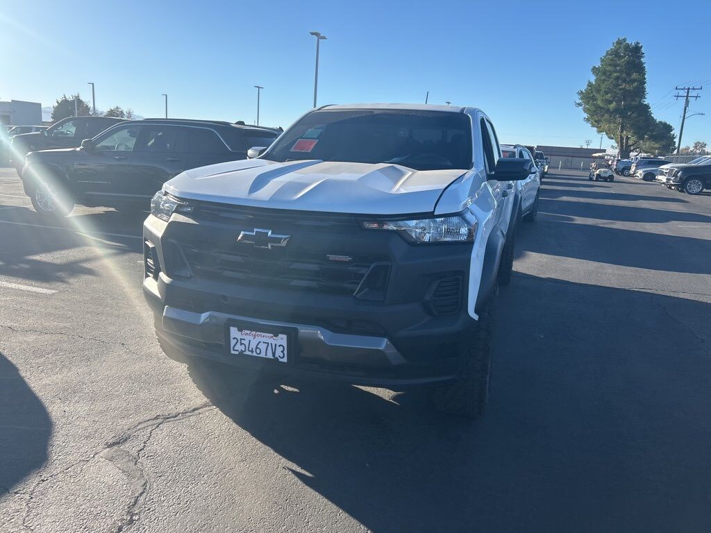 Advanced Trailering Package (Trailering App), Heavy-Duty Trailering Package (Integrated Trailer Brake Controller), Preferred Equipment Group 0TR (Automatic Emergency Braking, Chevy Safety Assist, Following Distance Indicator, Forward Collision Alert, Front Pedestrian & Bicyclist Braking, IntelliBeam Automatic High Beam On/Off, and Lane Keep Assist w/Lane Departure Warning), Safety Package (Black Painted Mirror Caps, Blind Zone Steering Assist, Heated Power-Adjustable Outside Mirrors, Rear Cross Traffic Braking, and Rear Park Assist), Trail Boss Convenience Package (Electronic Automatic Cruise Control, Manual Rear-Sliding Window, and Rear-Window Electric Defogger), Trail Boss Convenience Package II (8-Way Power Driver Seat Adjuster, EZ-Lift & Lower Tailgate, Power Driver Lumbar Control Seat Adjuster, StowFlex Tailgate Storage Compartment, and Tailgate Keyed Cylinder Lock), Colorado Trail Boss, 2.7L Turbo, 8-Speed Automatic, 4WD, Summit White, Black Cloth, 2.7L Turbo High-Output Calibration (LPO), 220 Amp Generator, 3.42 Rear Axle Ratio, 4-Way Manual Passenger Seat Adjuster, 4-Wheel Disc Brakes, 6 Speakers, 6-Speaker Audio System Feature, 6-Way Manual Driver Seat Adjuster, ABS brakes, Air Conditioning, Alloy wheels, AM/FM radio: SiriusXM, Apple CarPlay/Android Auto, Auto High-beam Headlights, Black Nameplates (LPO), Brake assist, Carpeted Front Floor Mats (DISC), Chevrolet Performance Black Exhaust Tip (LPO), Cloth Seat Trim, Compass, Delay-off headlights, Driver door bin, Driver vanity mirror, Dual front impact airbags, Dual front side impact airbags, Electronic Stability Control, Front anti-roll bar, Front Bucket Seats, Front Center Armrest, Front License Plate Kit, Front wheel independent suspension, Illuminated entry, Low tire pressure warning, Navigation System, Occupant sensing airbag, Off-Road Assist Steps (LPO), Outside temperature display, Overhead airbag, Overhead console, Panic alarm, Passenger door bin, Passenger vanity mirror, Power door mirrors, Power steering, Power windows, Radio data system, Radio: 11.3" Diagonal Advanced Color LCD Display, Rear reading lights, Rear step bumper, Remote keyless entry, Security system, SiriusXM Radio, Speed-sensing steering, Split folding rear seat, Steering Wheel Mounted Audio Controls, Steering wheel mounted audio controls, Tachometer, Tilt steering wheel, Traction control, Trip computer, Variably intermittent wipers, Wheels: 18" x 8.5" Black High Gloss Aluminum, and Wireless Phone Projection.