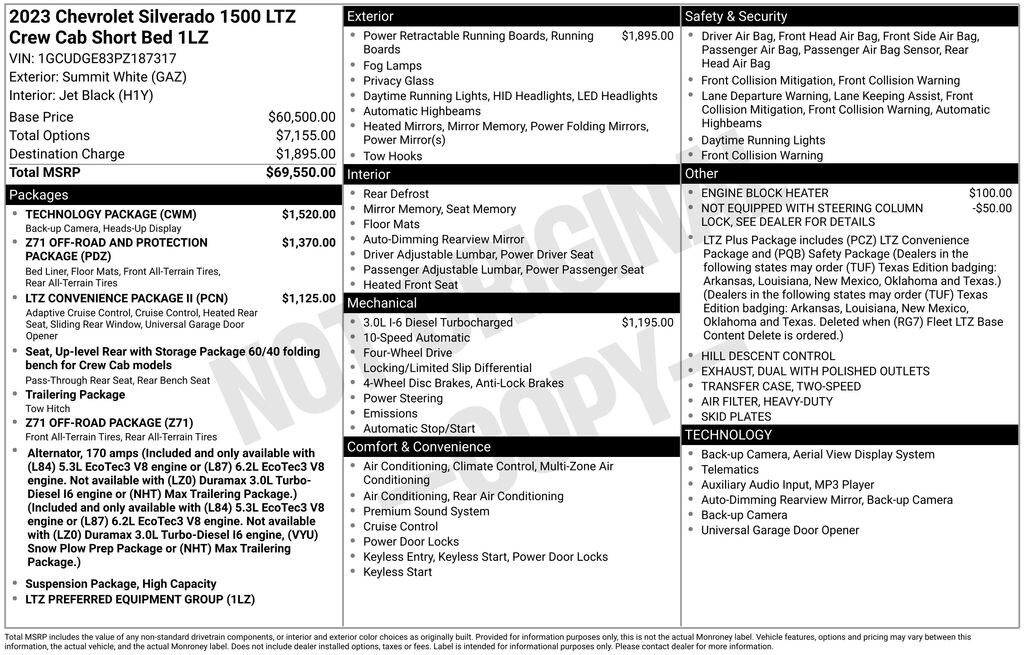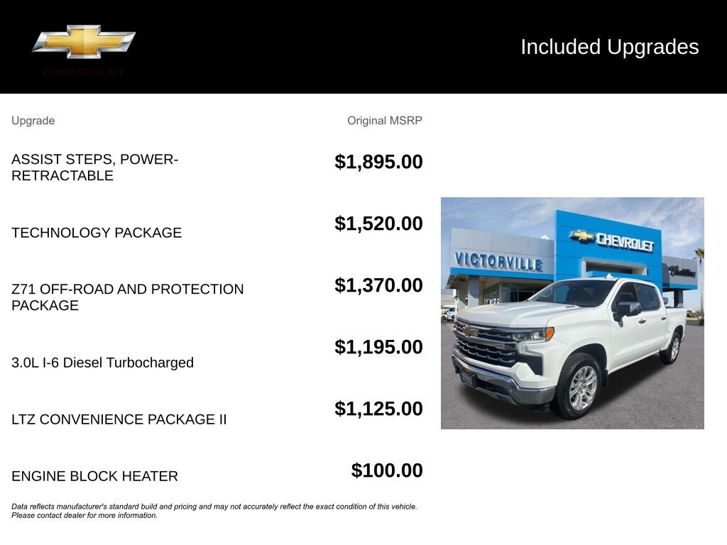 Summit White 2023 Chevrolet Silverado 1500 LTZ 4WD 10-Speed Automatic 3.0L I6 Silverado 1500 LTZ, 4D Crew Cab, 3.0L I6, 10-Speed Automatic, 4WD, Summit White, Jet Black Leather.