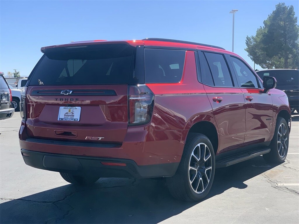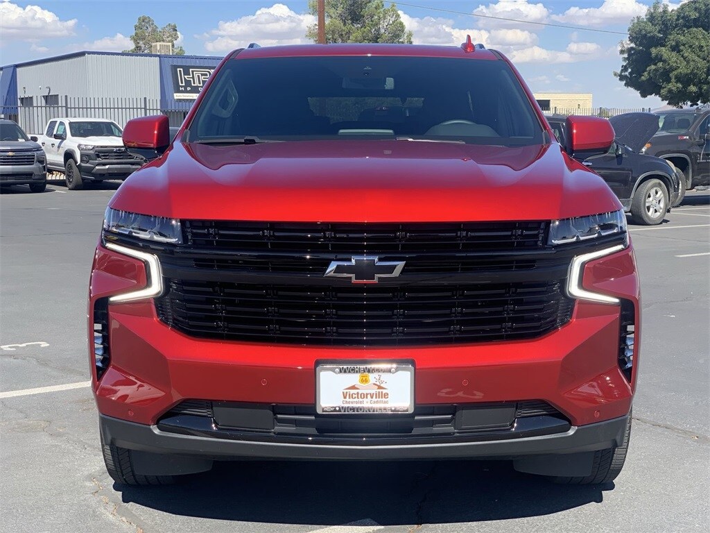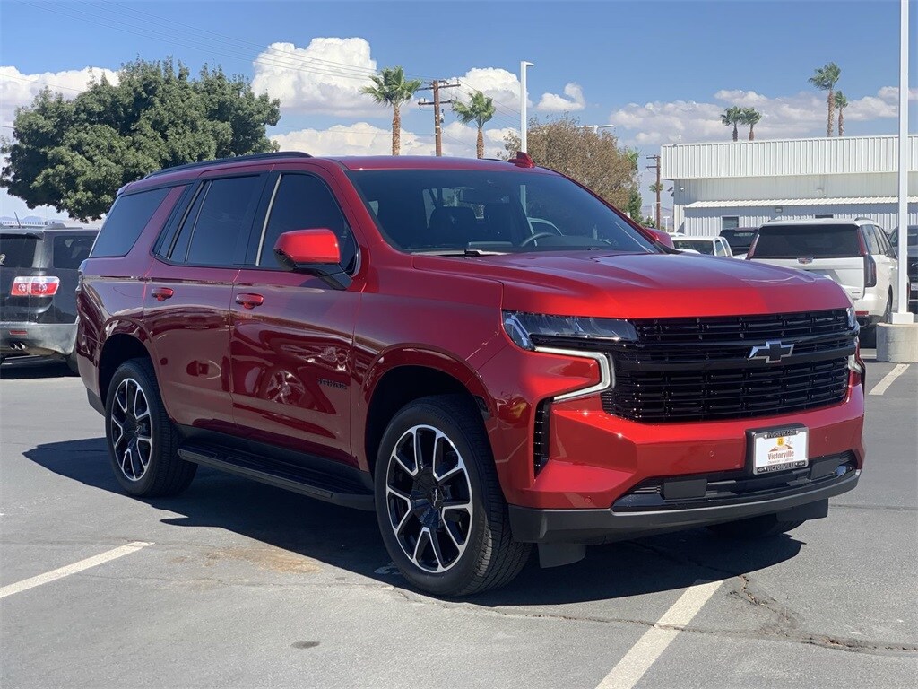 License Plate Front Mounting Package, Preferred Equipment Group 1SP (1st & 2nd Row Color-Keyed Carpeted Floor Mats, Auto-Dimming Inside Rear-View Mirror, Bose 9-Speaker Stereo Audio System Feature, Bright Front & Rear Door Sill Plates, Color-Keyed Carpeting Floor Covering, Driver & Front Outboard Passenger Airbags, Enhanced Driver Information Center, Floor Console w/Storage Area, Hands-Free Rear Power Programmable Liftgate, Infotainment Display, LED Daytime Running Lamps, Memory Settings for Driver, Remote Start, SiriusXM Radio w/360L, Universal Home Remote, Wireless Charging, and Wrapped Steering Wheel), Tahoe RST, 4D Sport Utility, EcoTec3 5.3L V8, 10-Speed Automatic with Overdrive, 4WD, Radiant Red Tintcoat, Jet Black/Victory Red Leather, 10-Way Power Driver & Passenger Seat Adjusters, 3.23 Rear Axle Ratio, 3rd row seats: split-bench, 4-Wheel Disc Brakes, 9 Speakers, ABS brakes, Air Conditioning, Alloy wheels, AM/FM radio: SiriusXM with 360L, Apple CarPlay/Android Auto, Auto High-beam Headlights, Auto-dimming Rear-View mirror, Automatic temperature control, Brake assist, Bumpers: body-color, Compass, Delay-off headlights, Driver door bin, Driver vanity mirror, Dual front impact airbags, Dual front side impact airbags, Dual-Pane Power Panoramic Sunroof, Electronic Stability Control, Emergency communication system: OnStar and Chevrolet connected services capable, Four wheel independent suspension, Front anti-roll bar, Front Bucket Seats, Front Center Armrest, Front dual zone A/C, Front High-Back Reclining Bucket Seats, Front reading lights, Fully automatic headlights, Garage door transmitter, Heated door mirrors, Heated Driver & Front Passenger Seats, Heated front seats, Highway Safety Kit, Illuminated entry, Illuminated Front & Rear Door Sill Plates (LPO), Low tire pressure warning, Memory seat, Navigation System, Not Equipped w/Wheel Locks (LPO), Occupant sensing airbag, Outside temperature display, Overhead airbag, Overhead console, Panic alarm, Passenger door bin, Passenger vanity mirror, Perforated Leather Seat Trim, Power door mirrors, Power driver seat, Power Liftgate, Power passenger seat, Power steering, Power windows, Premium audio system: Chevrolet Infotainment 3 Premium, Premium Smooth Ride Suspension, Radio: Chevrolet Infotainment 3 Premium System, Rain sensing wipers, Rear air conditioning, Rear anti-roll bar, Rear reading lights, Rear seat center armrest, Rear window defroster, Rear window wiper, Remote keyless entry, Roof rack: rails only, Security system, Set of 4 Wheel Locks (LPO), Speed control, Speed-sensing steering, Split folding rear seat, Spoiler, Steering wheel mounted audio controls, Tachometer, Telescoping steering wheel, Tilt steering wheel, Traction control, Trip computer, Variably intermittent wipers, Vertical Cargo Net (LPO), Voltmeter, and Wheels: 22" x 9" Bright Machined.