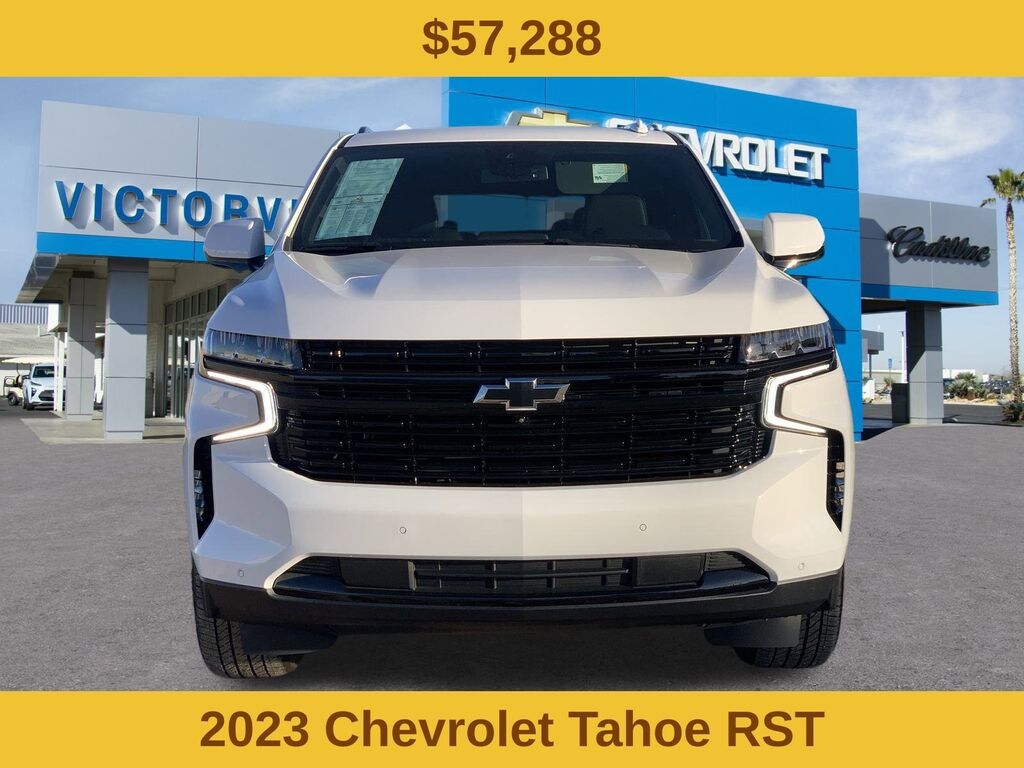 Driver Alert Package (Lane Change Alert w/Side Blind Zone Alert and Rear Cross Traffic Alert), License Plate Front Mounting Package, Luxury Package (2nd Row Pwr Release 60/40 Split-Folding Bench Seat, 3rd Row 60/40 Power-Folding Split-Bench Seat, Adaptive Cruise Control, Enhanced Automatic Emergency Braking, HD Surround Vision, Heated 2nd Row Outboard Seats, Heated Steering Wheel, Memory Settings, Outside Heated Power-Adjustable Mirrors, Power Tilt & Telescopic Steering Column, and Rear Pedestrian Alert), Preferred Equipment Group 1SP (1st & 2nd Row Color-Keyed Carpeted Floor Mats, Auto-Dimming Inside Rear-View Mirror, Bose 9-Speaker Stereo Audio System Feature, Bright Front & Rear Door Sill Plates, Color-Keyed Carpeting Floor Covering, Driver & Front Outboard Passenger Airbags, Enhanced Driver Information Center, Floor Console w/Storage Area, Hands-Free Rear Power Programmable Liftgate, Infotainment Display, LED Daytime Running Lamps, Memory Settings for Driver, Remote Start, SiriusXM Radio w/360L, Universal Home Remote, Wireless Charging, and Wrapped Steering Wheel), Tahoe RST, 4D Sport Utility, EcoTec3 5.3L V8, 10-Speed Automatic with Overdrive, RWD, Summit White, Jet Black/Victory Red Leather, 10-Way Power Driver & Passenger Seat Adjusters, 1st & 2nd Rows All-Weather Floor Liners (LPO), 3.23 Rear Axle Ratio, 3rd row seats: split-bench, 4-Wheel Disc Brakes, 9 Speakers, ABS brakes, Air Conditioning, Alloy wheels, AM/FM radio: SiriusXM with 360L, Apple CarPlay/Android Auto, Auto High-beam Headlights, Auto-dimming Rear-View mirror, Automatic temperature control, Brake assist, Bumpers: body-color, Compass, Delay-off headlights, Driver door bin, Driver vanity mirror, Dual front impact airbags, Dual front side impact airbags, Electronic Stability Control, Emergency communication system: OnStar and Chevrolet connected services capable, Four wheel independent suspension, Front anti-roll bar, Front Bucket Seats, Front Center Armrest, Front dual zone A/C, Front High-Back Reclining Bucket Seats, Front reading lights, Fully automatic headlights, Garage door transmitter, Heated door mirrors, Heated Driver & Front Passenger Seats, Heated front seats, Illuminated entry, Low tire pressure warning, Memory seat, Navigation System, Not Equipped w/Wheel Locks (LPO), Occupant sensing airbag, Outside temperature display, Overhead airbag, Overhead console, Panic alarm, Passenger door bin, Passenger vanity mirror, Perforated Leather Seat Trim, Power door mirrors, Power driver seat, Power Liftgate, Power passenger seat, Power Release 2nd Row Bucket Seats, Power steering, Power windows, Premium audio system: Chevrolet Infotainment 3 Premium, Premium Smooth Ride Suspension, Radio: Chevrolet Infotainment 3 Premium System, Rain sensing wipers, Rear air conditioning, Rear anti-roll bar, Rear reading lights, Rear seat center armrest, Rear window defroster, Rear window wiper, Remote keyless entry, Roof rack: rails only, Security system, Set of 4 Wheel Locks (LPO), Speed control, Speed-sensing steering, Split folding rear seat, Spoiler, Sport Pedal Cover Kit (LPO), Steering wheel mounted audio controls, Tachometer, Telescoping steering wheel, Tilt steering wheel, Traction control, Trip computer, Variably intermittent wipers, Voltmeter, and Wheels: 22" x 9" Bright Machined.