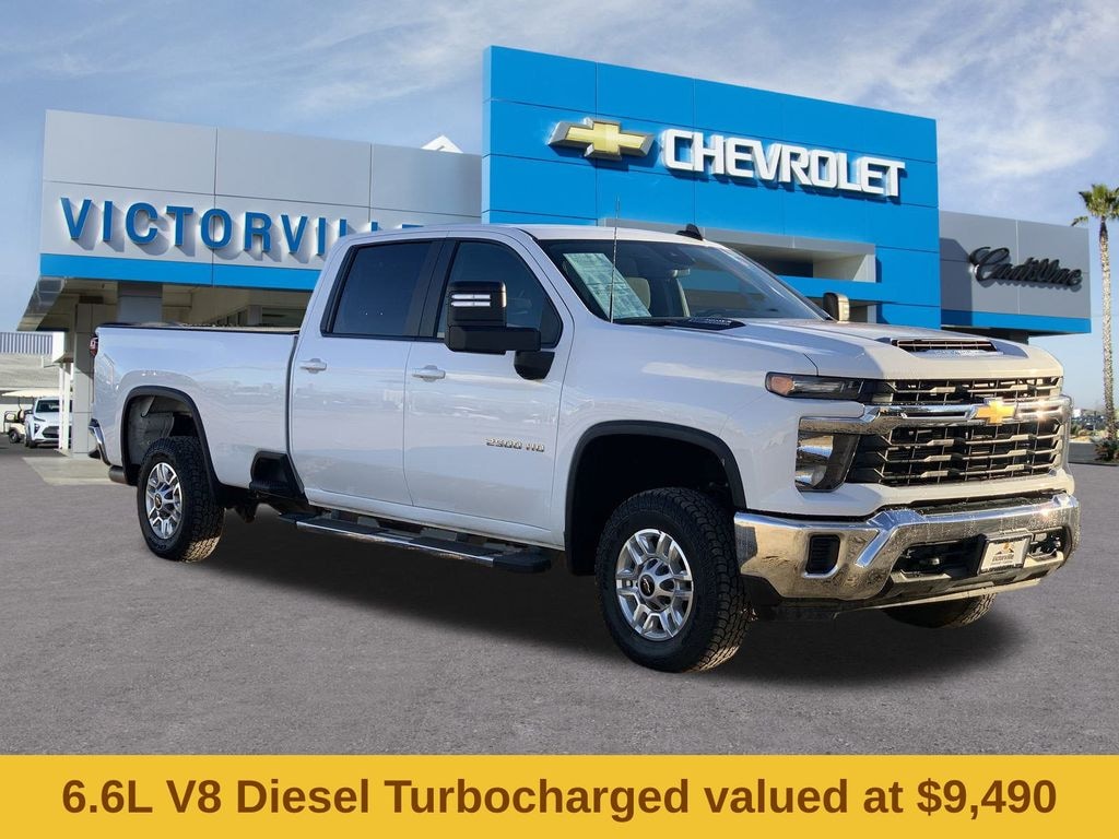 Preferred Equipment Group 1LT (170 Amp Alternator, 2-Speed Electronic Shift Transfer Case, 4-Way Manual Driver Seat Adjuster, Black Mirror Caps, Bluetooth® For Phone, Chevrolet Connected Access Capable, Color-Keyed Carpeting Floor Covering, Compass, Deep-Tinted Glass, Electronic Cruise Control w/Set & Resume Speed, EZ Lift Power Lock & Release Tailgate, Front Rubberized Vinyl Floor Mats, Halogen Reflector Headlamps, HD Rear Vision Camera, Heated Vertical Trailering Mirrors, Keyless Open & Start, Manual Tilt-Wheel Steering Column, OnStar & Chevrolet Connected Services Capable, Power Door Locks, Power Front Windows w/Driver Express Up/Down, Power Front Windows w/Passenger Express Down, Power Rear Windows w/Express Down, Push Button Start, Rear 60/40 Folding Bench Seat (Folds Up), Rear Rubberized Vinyl Floor Mats, SiriusXM w/360L, Standard Tailgate, Steering Wheel Audio Controls, Wi-Fi Hotspot Capable, Wireless Phone Projection, and Wrapped Steering Wheel), Suspension Package, Silverado 2500HD LT, 4D Crew Cab, Duramax 6.6L V8 Turbodiesel, 10-Speed Automatic, 4WD, Summit White, Black Cloth, 17" Machined Aluminum Wheels, 220 Amp Alternator, 4-Wheel Disc Brakes, 6 Speakers, 6-Speaker Audio System, 6" Rectangular Chromed Tubular Assist Steps, 720 Cold-Cranking Amps Heavy-Duty Battery, ABS brakes, Air Conditioning, Alloy wheels, AM/FM radio: SiriusXM with 360L, Apple CarPlay/Android Auto, Auto High-beam Headlights, Brake assist, Bumpers: chrome, Cloth Seat Trim, Delay-off headlights, Deleted 3 Years of Remote Access, Driver door bin, Driver vanity mirror, Dual front impact airbags, Dual front side impact airbags, Durabed Pickup Bed, Electronic Stability Control, Engine Block Heater, Exhaust Brake, Front 40/20/40 Split-Bench Seats w/Lockable Storage, Front anti-roll bar, Front Center Armrest w/Storage, Front License Plate Kit, Front reading lights, Front wheel independent suspension, Fully automatic headlights, Heated door mirrors, Illuminated entry, Low tire pressure warning, Occupant sensing airbag, Outside temperature display, Overhead airbag, Overhead console, Panic alarm, Passenger door bin, Passenger vanity mirror, Power door mirrors, Power steering, Power windows, Premium audio system: Chevrolet Infotainment 3 Premium, Radio: Chevrolet Infotainment 3 Premium System, Rear reading lights, Rear step bumper, Remote keyless entry, Speed control, Split folding rear seat, Steering wheel mounted audio controls, Tachometer, Tilt steering wheel, Traction control, Trip computer, Turn signal indicator mirrors, Variably intermittent wipers, Voltmeter, and Winter Grille Cover.