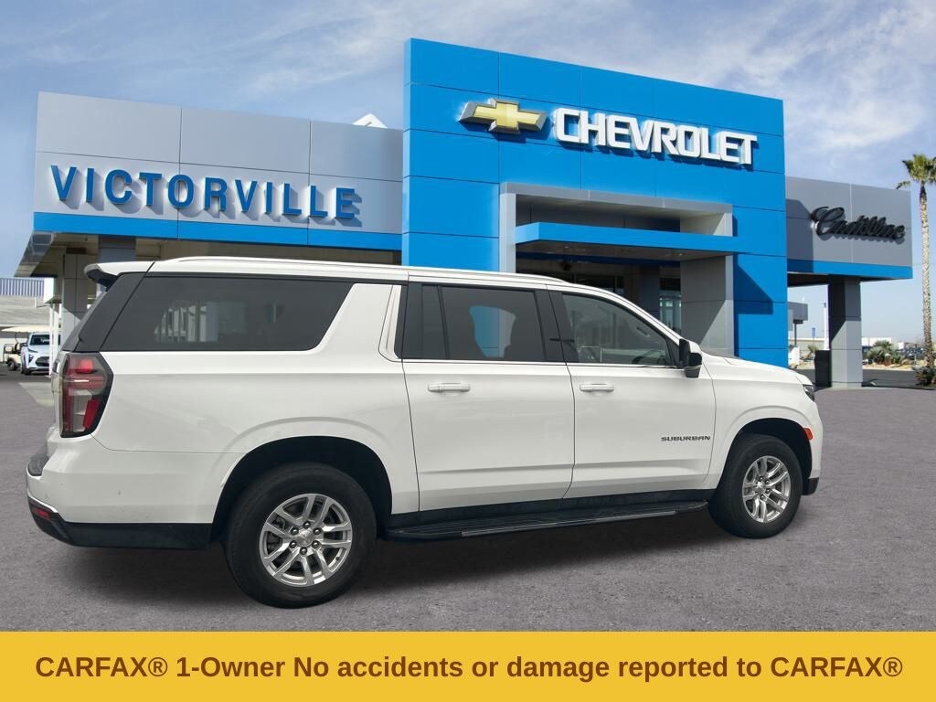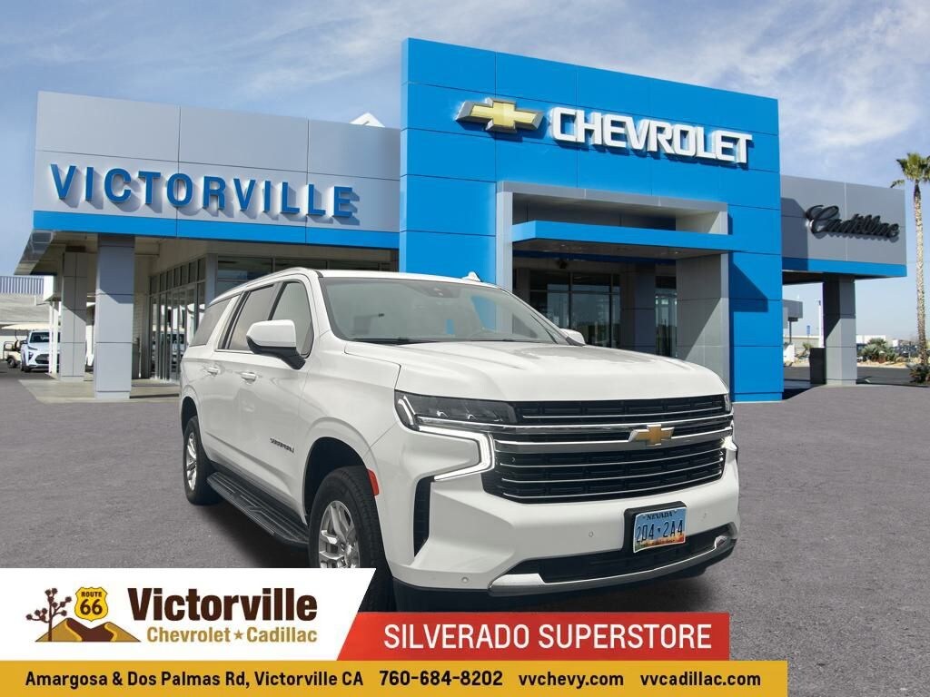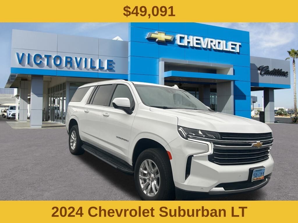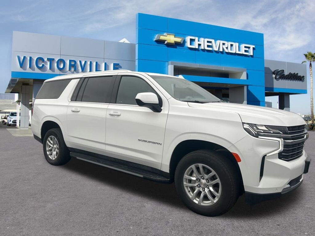 License Plate Front Mounting Package, Preferred Equipment Group 1LT (10-Way Power Driver & Passenger Seat Adjusters, 1st & 2nd Row Color-Keyed Carpeted Floor Mats, Auto-Dimming Inside Rear-View Mirror, Bose 9-Speaker Stereo Audio System Feature, Bright Front & Rear Door Sill Plates, Color-Keyed Carpeting Floor Covering, Driver & Front Outboard Passenger Airbags, Enhanced Driver Information Center, Floor Console w/Storage Area, Hands-Free Rear Power Programmable Liftgate, Heated Driver & Front Passenger Seats, Infotainment Display, LED Daytime Running Lamps, Memory Settings For Driver, Remote Start, SiriusXM w/360L, Universal Home Remote, Wireless Charging, and Wrapped Steering Wheel), Suburban LT, 4D Sport Utility, EcoTec3 5.3L V8, 10-Speed Automatic with Overdrive, RWD, Summit White, Jet Black Leather, 3.23 Rear Axle Ratio, 3rd row seats: split-bench, 4-Wheel Disc Brakes, 9 Speakers, ABS brakes, Air Conditioning, Alloy wheels, AM/FM radio: SiriusXM with 360L, Apple CarPlay/Android Auto, Auto High-beam Headlights, Auto-dimming Rear-View mirror, Automatic temperature control, Brake assist, Bumpers: body-color, Compass, Delay-off headlights, Deleted 3 Years of Remote Access, Driver door bin, Driver vanity mirror, Dual front impact airbags, Dual front side impact airbags, Electronic Stability Control, Emergency communication system: OnStar and Chevrolet connected services capable, Four wheel independent suspension, Front anti-roll bar, Front Bucket Seats, Front Center Armrest, Front dual zone A/C, Front reading lights, Fully automatic headlights, Garage door transmitter, Heated door mirrors, Heated front seats, Illuminated entry, Leather-Appointed Seating, Low tire pressure warning, Memory seat, Navigation System, Occupant sensing airbag, Outside temperature display, Overhead airbag, Overhead console, Panic alarm, Passenger door bin, Passenger vanity mirror, Power door mirrors, Power driver seat, Power Liftgate, Power passenger seat, Power steering, Power windows, Premium audio system: Chevrolet Infotainment 3 Premium, Premium Smooth Ride Suspension, Radio: Chevrolet Infotainment 3 Premium System, Rain sensing wipers, Rear air conditioning, Rear anti-roll bar, Rear reading lights, Rear seat center armrest, Rear window defroster, Rear window wiper, Remote keyless entry, Roof rack: xxxxxx, Security system, Speed control, Speed-sensing steering, Split folding rear seat, Spoiler, Steering wheel mounted audio controls, Tachometer, Telescoping steering wheel, Tilt steering wheel, Traction control, Trip computer, Variably intermittent wipers, Voltmeter, and Wheels: 18" x 8.5" Bright Silver Painted Aluminum.