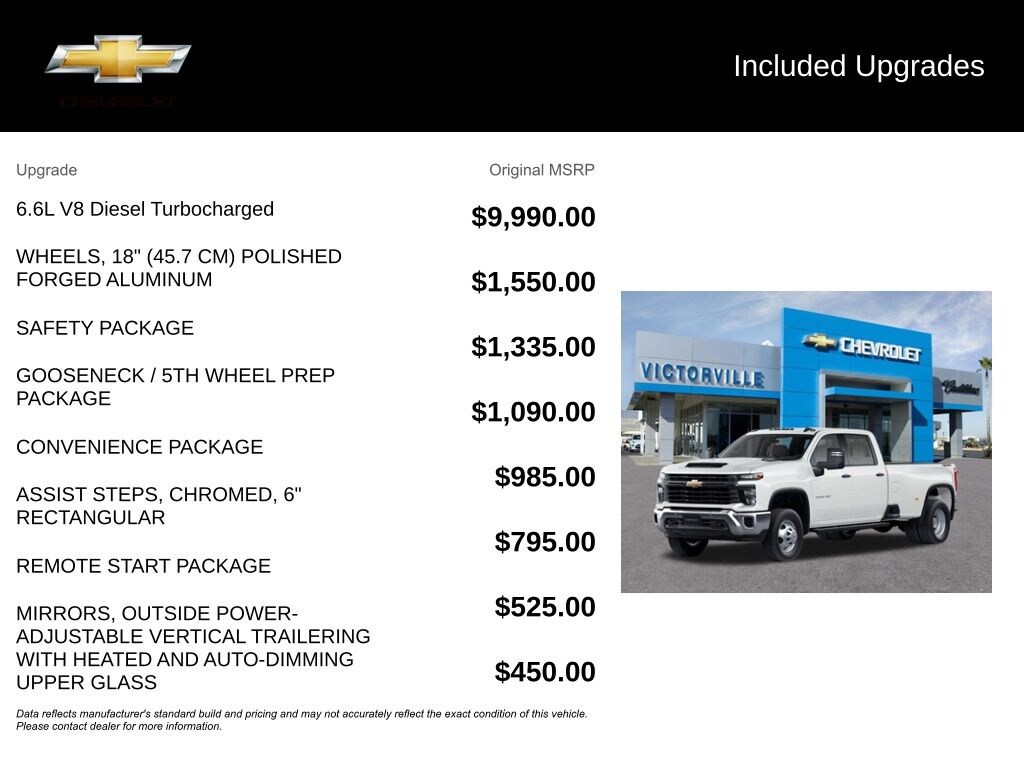Why Buy from Victorville Chevrolet? We have received Chevrolet’s “Dealer of the Year” award multiple years in a row. Been voted locally “Best of the Desert” by the Daily Press. We are the highest volume selling dealership in the high desert and treat you like family. At Victorville Chevrolet, we do things differently. Our team is built around accuracy, honesty, and accountability from your first interaction to the moment you drive home. We provide: • Verified availability checked by real managers • Transparent, upfront pricing with no hidden fees • A relaxed, zero-pressure experience • Fast, consistent communication • Access to inventory across Southern California if we don’t have your exact match A better Chevy experience starts right here at Victorville Chevrolet.