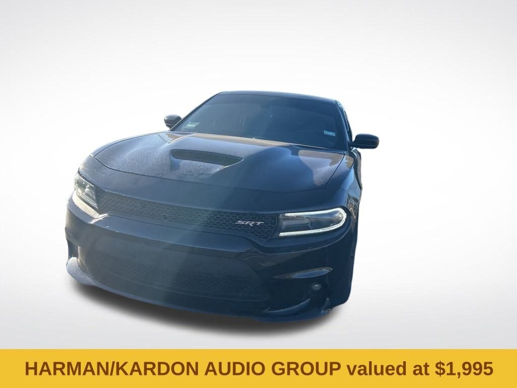 Harman/kardon Audio Group (19 harman/kardon Greenedge Speakers and harman/kardon GreenEdge Amp), Laguna Leather Package (Laguna Lux Perform SRT Emboss Logo), Quick Order Package 23X, Charger SRT 392, 4D Sedan, SRT HEMI 6.4L V8 MDS, 8-Speed Automatic, RWD, Phantom Black Tri-Coat Pearl, Black Leather, 1 Yr Trial (Registration Required), 4-Wheel Disc Brakes, 5-Year SiriusXM Traffic Service, 5-Year SiriusXM Travel Link Service, 6 Speakers, 8.4" Touchscreen Display, ABS brakes, Air Conditioning, Alloy wheels, AM/FM radio: SiriusXM, Anti-whiplash front head restraints, Audio memory, Auto-dimming door mirrors, Auto-dimming Rear-View mirror, Automatic temperature control, Brake assist, Bumpers: body-color, Compass, Configurable Drive Mode, Delay-off headlights, Driver door bin, Driver vanity mirror, Dual front impact airbags, Dual front side impact airbags, Electronic Stability Control, Four wheel independent suspension, Front anti-roll bar, Front Bucket Seats, Front Center Armrest, Front dual zone A/C, Front fog lights, Front reading lights, Fully automatic headlights, Garage door transmitter: HomeLink, GPS Antenna Input, GPS Navigation, Harman Radio Manufacturer, HD Radio, Heated door mirrors, Heated front seats, Heated rear seats, Heated steering wheel, High intensity discharge headlights: Bi-Xenon, Illuminated entry, Integrated Voice Command w/Bluetooth, Leather Shift Knob, Low tire pressure warning, Media Hub (SD, USB, AUX), Memory seat, Occupant sensing airbag, Outside temperature display, Overhead airbag, Overhead console, Panic alarm, ParkView Rear Back-Up Camera, Passenger door bin, Passenger vanity mirror, Performance Shift Indicator, Power door mirrors, Power driver seat, Power passenger seat, Power steering, Power Tilt/Telescope Steering Column, Power windows, Radio data system, Radio: Uconnect 8.4, Radio: Uconnect 8.4 NAV, Rear anti-roll bar, Rear reading lights, Rear seat center armrest, Rear window defroster, Red Seat Belts, Remote keyless entry, Security system, SIRIUSXM Satellite Radio, SIRIUSXM Traffic, SiriusXM Travel Link, Speed control, Speed-Sensitive Wipers, Split folding rear seat, Spoiler, Sport steering wheel, SRT Performance Info, Steering wheel mounted audio controls, Suede/Nappa Lux Perform SRT Logo, Tachometer, Telescoping steering wheel, Tilt steering wheel, Traction control, Trip computer, Uconnect Access, Variably intermittent wipers, Ventilated front seats, and Wheels: 20" x 9.5" SRT Hyper Black Forged.