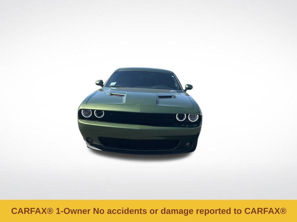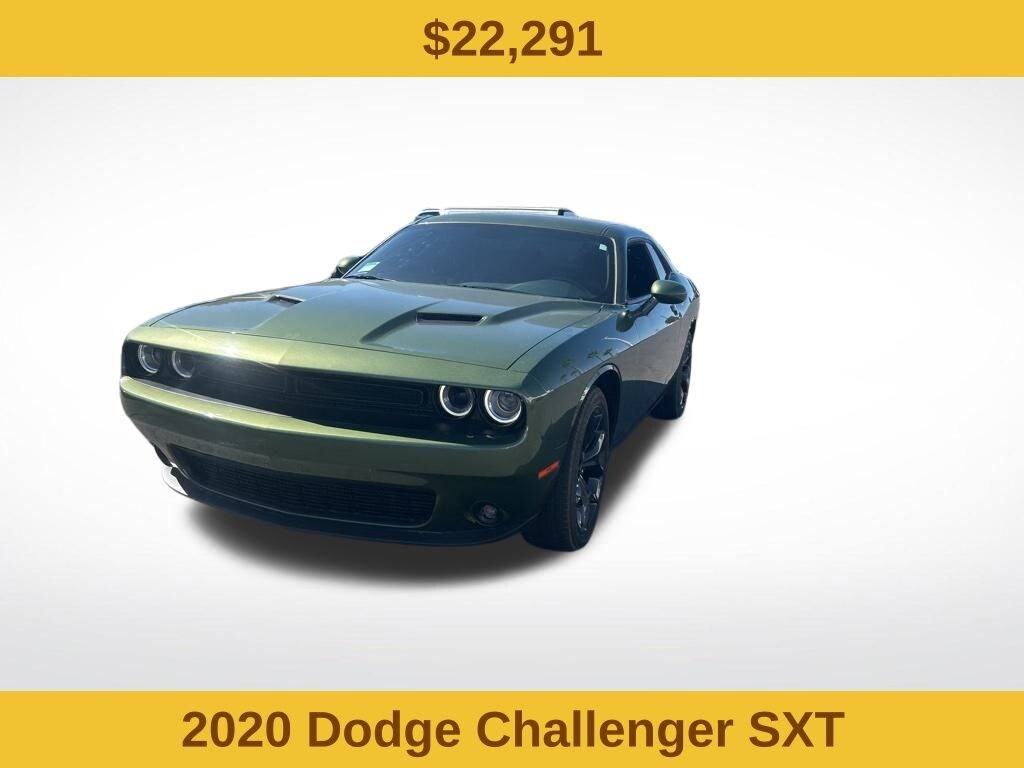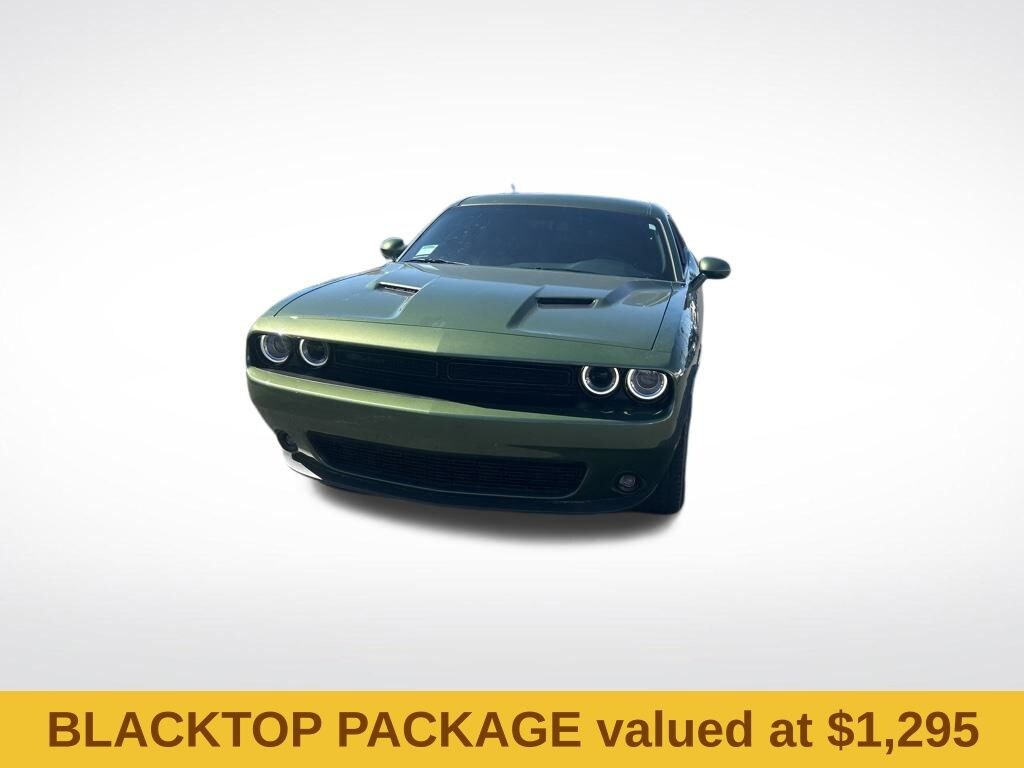 Blacktop Package (Black Fuel Filler Door, Black Grille w/Bezel, Challenger Blacktop Grille Badge, Gloss Black I/P Cluster Trim Rings, Leather Performance Steering Wheel, Rear Black Spoiler, Satin Black Dodge Tail Lamp Badge, and Wheels: 20" x 8.0" Black Noise Painted), Quick Order Package 2EA SXT, Challenger SE, 2D Coupe, 3.6L V6 24V VVT, 8-Speed Automatic, RWD, F8 Green, Black Cloth, 4-Wheel Disc Brakes, 6 Speakers, ABS brakes, Air Conditioning, Alloy wheels, AM/FM radio, Anti-whiplash front head restraints, Apple CarPlay, Apple CarPlay/Android Auto, Auto-dimming Rear-View mirror, Automatic temperature control, Brake assist, Bumpers: body-color, Compass, Delay-off headlights, Driver door bin, Driver vanity mirror, Dual front impact airbags, Dual front side impact airbags, Electronic Stability Control, For More Info, Call 800-643-2112, Four wheel independent suspension, Front anti-roll bar, Front Bucket Seats, Front Center Armrest, Front dual zone A/C, Front License Plate Bracket, Front reading lights, Fully automatic headlights, Google Android Auto, GPS Antenna Input, Heated door mirrors, Houndstooth Cloth Sport Seat, Illuminated entry, Integrated Center Stack Radio, Integrated Voice Command w/Bluetooth, Leather Shift Knob, Low tire pressure warning, Media Hub (2 USB, AUX), Outside temperature display, Overhead airbag, Overhead console, Panic alarm, ParkView Rear Back-Up Camera, Passenger door bin, Passenger vanity mirror, Power door mirrors, Power driver seat, Power steering, Power windows, Radio data system, Radio: Uconnect 4 w/7" Display, Rear anti-roll bar, Rear reading lights, Rear seat center armrest, Rear window defroster, Remote keyless entry, Security system, SiriusXM Radio Service, SiriusXM Satellite Radio, Speed control, Speed-sensing steering, Split folding rear seat, Spoiler, Steering wheel mounted audio controls, Tachometer, Telescoping steering wheel, Tilt steering wheel, Traction control, Trip computer, USB Host Flip, Variably intermittent wipers, and Wheels: 18" x 7.5" Cast Aluminum.