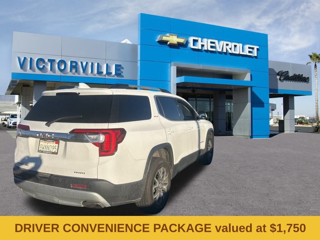 Driver Convenience Package (120-Volt Power Outlet, 8-Way Power Driver Seat Adjuster, Brushed Aluminum Roof Rails, Hands Free Power Programmable Liftgate, Heated Driver & Front Passenger Seats, Power Driver Lumbar Control Seat Adjuster, and Remote Start), Preferred Equipment Group 3SA, Acadia SLE, 4D Sport Utility, 3.6L V6 SIDI, 9-Speed Automatic, AWD, Summit White, Jet Black Cloth, 155 Amp Alternator, 3rd row seats: split-bench, 4-Way Manual Driver Seat Adjuster, 4-Way Manual Passenger Seat Adjuster, 4-Wheel Disc Brakes, 6 Speakers, 6-Passenger (2-2-2 Seating Configuration), 6-Speaker Audio System Feature, 7-Passenger (2-3-2 Seating Configuration), ABS brakes, Air Conditioning, Alloy wheels, AM/FM radio: SiriusXM, Apple CarPlay/Android Auto, Auto High-beam Headlights, Automatic temperature control, Brake assist, Bumpers: body-color, Compass, Delay-off headlights, Driver door bin, Driver vanity mirror, Dual front impact airbags, Dual front side impact airbags, Dual SkyScape 2-Panel Power Sunroof, Electronic Stability Control, Emergency communication system: OnStar and GMC connected services capable, Four wheel independent suspension, Front anti-roll bar, Front Bucket Seats, Front Center Armrest, Front dual zone A/C, Front License Plate Bracket, Front reading lights, Fully automatic headlights, Heated door mirrors, Illuminated entry, Knee airbag, Low tire pressure warning, Occupant sensing airbag, Outside temperature display, Overhead airbag, Overhead console, Panic alarm, Passenger door bin, Passenger vanity mirror, Power door mirrors, Power steering, Power windows, Premium audio system: GMC Infotainment System, Premium Cloth Seat Trim, Radio data system, Radio: AM/FM w/8" Diagonal Multi-Touch Display, Rear air conditioning, Rear anti-roll bar, Rear reading lights, Rear window defroster, Rear window wiper, Remote keyless entry, Security system, SiriusXM Radio, Speed control, Speed-sensing steering, Spoiler, Steering wheel mounted audio controls, Tachometer, Telescoping steering wheel, Tilt steering wheel, Traction control, Trip computer, Turn signal indicator mirrors, Universal Home Remote, Variably intermittent wipers, Voltmeter, Wheels: 18" Machined Aluminum w/Dark Accents, and Wireless Apple CarPlay/Wireless Android Auto.