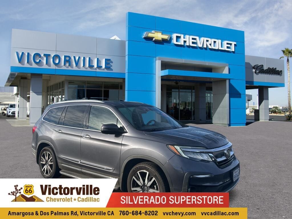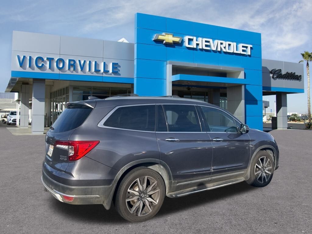 Pilot Touring 8 Passenger, 4D Sport Utility, 3.5L V6 24V SOHC i-VTEC, 9-Speed Automatic, AWD, Modern Steel Metallic, Black Leather, 10 Speakers, 3rd row seats: split-bench, 4-Wheel Disc Brakes, 4.334 Axle Ratio, A/V remote: CabinControl, ABS brakes, Air Conditioning, Alloy wheels, AM/FM radio: SiriusXM, Apple CarPlay/Android Auto, Auto High-beam Headlights, Auto-dimming Rear-View mirror, Automatic temperature control, Blind Spot Information (BSI) System warning, Brake assist, Bumpers: body-color, Compass, Delay-off headlights, Driver door bin, Driver vanity mirror, Dual front impact airbags, Dual front side impact airbags, Electronic Stability Control, Emergency communication system: HondaLink, Exterior Parking Camera Rear, Forward collision: Collision Mitigation Braking System (CMBS) + FCW mitigation, Four wheel independent suspension, Front anti-roll bar, Front Bucket Seats, Front Center Armrest, Front dual zone A/C, Front fog lights, Front reading lights, Fully automatic headlights, Garage door transmitter: HomeLink, Headphones, Heated door mirrors, Heated Front Bucket Seats, Heated front seats, Heated rear seats, Honda Satellite-Linked Navigation System, Illuminated entry, Lane departure: Lane Keeping Assist System (LKAS) active, Leather Seat Trim, Low tire pressure warning, Memory seat, Navigation system: Honda Satellite-Linked Navigation System, Occupant sensing airbag, Outside temperature display, Overhead airbag, Overhead console, Panic alarm, Passenger door bin, Passenger vanity mirror, Power door mirrors, Power driver seat, Power Liftgate, Power moonroof, Power passenger seat, Power steering, Power windows, Radio data system, Radio: 590-Watt Premium Audio System, Rear air conditioning, Rear anti-roll bar, Rear audio controls, Rear reading lights, Rear seat center armrest, Rear window defroster, Rear window wiper, Reclining 3rd row seat, Remote keyless entry, Roof rack: rails only, Security system, Speed control, Speed-sensing steering, Speed-Sensitive Wipers, Split folding rear seat, Spoiler, Steering wheel mounted audio controls, Tachometer, Telescoping steering wheel, Tilt steering wheel, Traction control, Trip computer, Turn signal indicator mirrors, Variably intermittent wipers, and Wheels: 20" Machine-Finished Alloy.