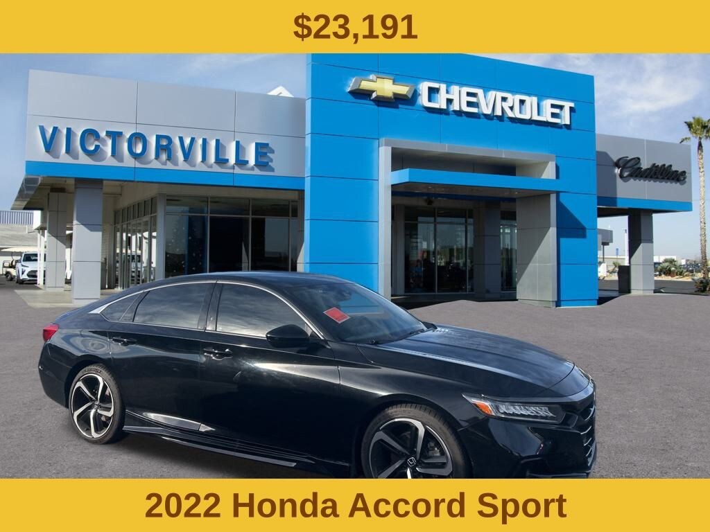Accord Sport, 4D Sedan, 1.5T I4 DOHC 16V Turbocharged VTEC, FWD, Crystal Black Pearl, Black Artificial Leather, 4-Wheel Disc Brakes, 8 Speakers, ABS brakes, Adaptive Cruise Control: Adaptive Cruise Control (ACC) with Low-Speed Follow, Air Conditioning, Alloy wheels, AM/FM radio, Apple CarPlay/Android Auto, Auto High-beam Headlights, Automatic temperature control, Brake assist, Bumpers: body-color, Delay-off headlights, Driver door bin, Driver vanity mirror, Dual front impact airbags, Dual front side impact airbags, Electronic Stability Control, Emergency communication system: HondaLink, Exterior Parking Camera Rear, Fabric w/Synthetic Leather Seat Trim, Forward collision: Collision Mitigation Braking System (CMBS) + FCW mitigation, Four wheel independent suspension, Front anti-roll bar, Front Bucket Seats, Front Center Armrest, Front dual zone A/C, Front fog lights, Front reading lights, Fully automatic headlights, Illuminated entry, Knee airbag, Lane Departure Warning System, Leather Shift Knob, Leather steering wheel, Low tire pressure warning, Occupant sensing airbag, Outside temperature display, Overhead airbag, Overhead console, Panic alarm, Passenger door bin, Passenger vanity mirror, Power door mirrors, Power driver seat, Power steering, Power windows, Radio data system, Radio: 180-Watt AM/FM Audio System, Rear anti-roll bar, Rear seat center armrest, Rear window defroster, Remote keyless entry, Security system, Speed control, Speed-sensing steering, Speed-Sensitive Wipers, Split folding rear seat, Spoiler, Steering wheel mounted audio controls, Tachometer, Telescoping steering wheel, Tilt steering wheel, Traction control, Trip computer, Variably intermittent wipers, and Wheels: 19" Machine-Finished Alloy w/Black Inserts.