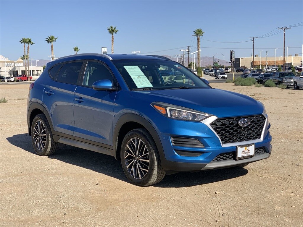 Cargo Package (Cargo Net, First Aid Kit, and Reversible Cargo Tray), Tucson SEL, 4D Sport Utility, 2.4L I4 DGI DOHC 16V, 6-Speed Automatic with Shiftronic, AWD, Aqua Blue, Black Cloth, 18" x 7.0J Alloy Wheels, 4-Wheel Disc Brakes, 6 Speakers, ABS brakes, Air Conditioning, Alloy wheels, AM/FM radio: SiriusXM, Apple CarPlay & Android Auto, Automatic temperature control, Axle Ratio: 3.195, Brake assist, Bumpers: body-color, Carpeted Floor Mats, Delay-off headlights, Driver door bin, Driver vanity mirror, Dual front impact airbags, Dual front side impact airbags, Electronic Stability Control, Emergency communication system: Blue Link, Exterior Parking Camera Rear, Four wheel independent suspension, Front anti-roll bar, Front Bucket Seats, Front Center Armrest, Front dual zone A/C, Front reading lights, Fully automatic headlights, Heated door mirrors, Heated Front Bucket Seats, Heated front seats, Illuminated entry, Low tire pressure warning, Mudguards, Occupant sensing airbag, Outside temperature display, Overhead airbag, Overhead console, Panic alarm, Passenger door bin, Passenger vanity mirror, Power door mirrors, Power driver seat, Power steering, Power windows, Radio: AM/FM/SiriusXM Audio System, Rear anti-roll bar, Rear seat center armrest, Rear window defroster, Rear window wiper, Remote keyless entry, Roof rack: rails only, Security system, Speed control, Speed-sensing steering, Split folding rear seat, Spoiler, Steering wheel mounted audio controls, Tachometer, Telescoping steering wheel, Tilt steering wheel, Traction control, Trip computer, Variably intermittent wipers, and YES Essentials Cloth Seat Trim.