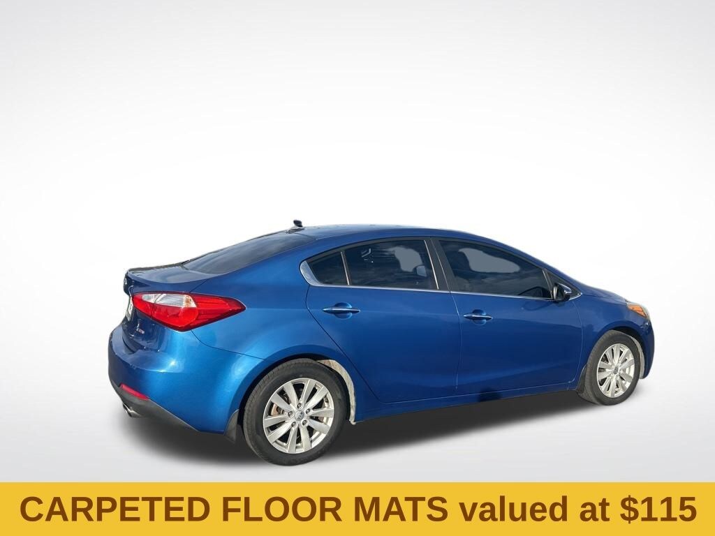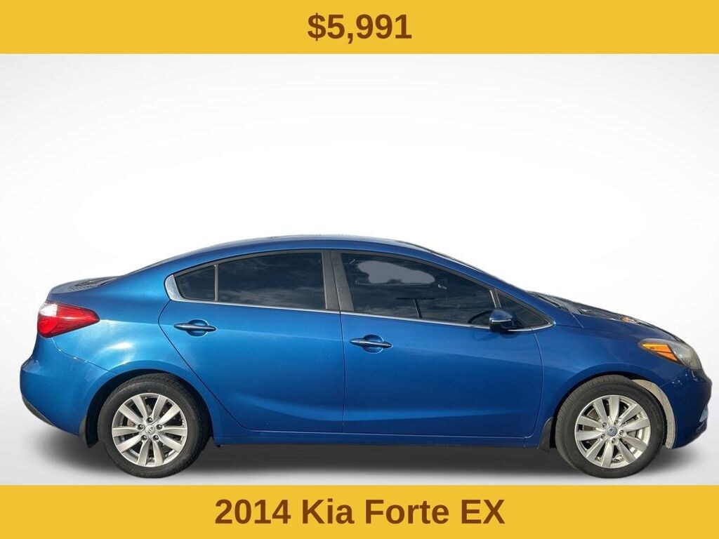 Forte EX, 4D Sedan, 2.0L I4 DOHC Dual CVVT, 6-Speed Automatic, FWD, Abyss Blue, Black Cloth, 4-Wheel Disc Brakes, 6 Speakers, 6.5J x 16" Alloy Wheels, ABS brakes, Air Conditioning, Alloy wheels, AM/FM radio: SiriusXM, Brake assist, Bumpers: body-color, Cargo Mat, Cargo Net, Cargo Tray, Carpeted Floor Mats, CD player, Cloth Seat Trim, Delay-off headlights, Driver door bin, Driver vanity mirror, Dual front impact airbags, Dual front side impact airbags, Electronic Stability Control, Exterior Parking Camera Rear, Front anti-roll bar, Front Bucket Seats, Front Center Armrest, Front fog lights, Front reading lights, Front wheel independent suspension, Fully automatic headlights, Heated door mirrors, Illuminated entry, Leather Shift Knob, Leather steering wheel, Low tire pressure warning, Mudguards, Occupant sensing airbag, Outside temperature display, Overhead airbag, Overhead console, Panic alarm, Passenger door bin, Passenger vanity mirror, Power door mirrors, Power steering, Power windows, Radio: AM/FM/CD/MP3 Audio Unit, Rear Bumper Applique, Rear seat center armrest, Rear window defroster, Remote keyless entry, Speed control, Speed-sensing steering, Split folding rear seat, Steering wheel mounted audio controls, Tachometer, Telescoping steering wheel, Tilt steering wheel, Traction control, Trip computer, Turn signal indicator mirrors, Variably intermittent wipers, and Wheel Locks.