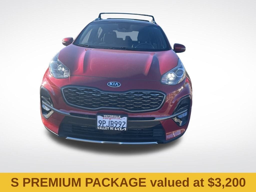 S Premium Package (10-Way Power Adjustable Driver Seat, Auto-Dimming Rear-View Mirror w/Homelink & Compass, Electronic Parking Brake (EPB), Forward Collision Assist, Heated Front Seats, Immobilizer, Leather Steering Wheel & Shift Knob, LED Fog Lamps, LED Interior Lighting, LED Rear Tail Lights, Panoramic Sunroof, Radio: AM/FM/SiriusXM, Smart Cruise Control w/Stop & Go, Smart Key w/Push Button Start, Smart Welcome, UV-Reducing Solar Control Glass, Wheels: 18" Unique Chrome Gray, and Windshield Wiper De-Icer), Sportage S, 4D Sport Utility, 2.4L I4 DGI DOHC 16V, 6-Speed Automatic Electronic with Overdrive, FWD, Hyper Red, Black Artificial Leather, 4-Wheel Disc Brakes, 6 Speakers, 6-Way Adjustable Driver's Seat, ABS brakes, Air Conditioning, Alloy wheels, AM/FM radio, Apple CarPlay & Android Auto, Auto High-beam Headlights, Axle Ratio: TBD, Brake assist, Bumpers: body-color, Cargo Net, Carpet Floor Mats, Cross Bars, Delay-off headlights, Driver door bin, Driver vanity mirror, Dual front impact airbags, Dual front side impact airbags, Electronic Stability Control, Exterior Parking Camera Rear, Four wheel independent suspension, Front anti-roll bar, Front Bucket Seats, Front Center Armrest, Front fog lights, Front reading lights, Fully automatic headlights, Heated door mirrors, Illuminated entry, Interior Light Kit, Leatherette Seat Trim, Low tire pressure warning, Occupant sensing airbag, Outside temperature display, Overhead airbag, Overhead console, Panic alarm, Passenger door bin, Passenger vanity mirror, Power door mirrors, Power steering, Power windows, Radio: AM/FM/MP3, Rear anti-roll bar, Rear seat center armrest, Rear window defroster, Rear window wiper, Remote keyless entry, Roof rack: rails only, Security system, Speed control, Speed-sensing steering, Split folding rear seat, Spoiler, Sport steering wheel, Steering wheel mounted audio controls, Tachometer, Telescoping steering wheel, Tilt steering wheel, Tow Hitch, Traction control, Trip computer, Turn signal indicator mirrors, Variably intermittent wipers, and Wheels: 18" Gray Alloy.