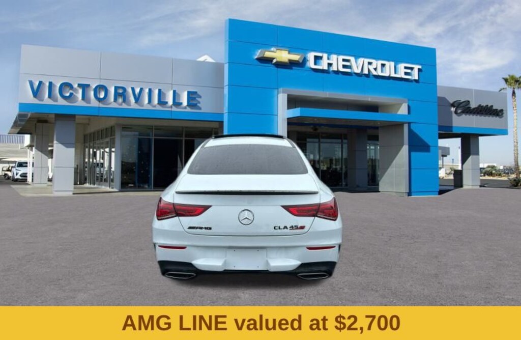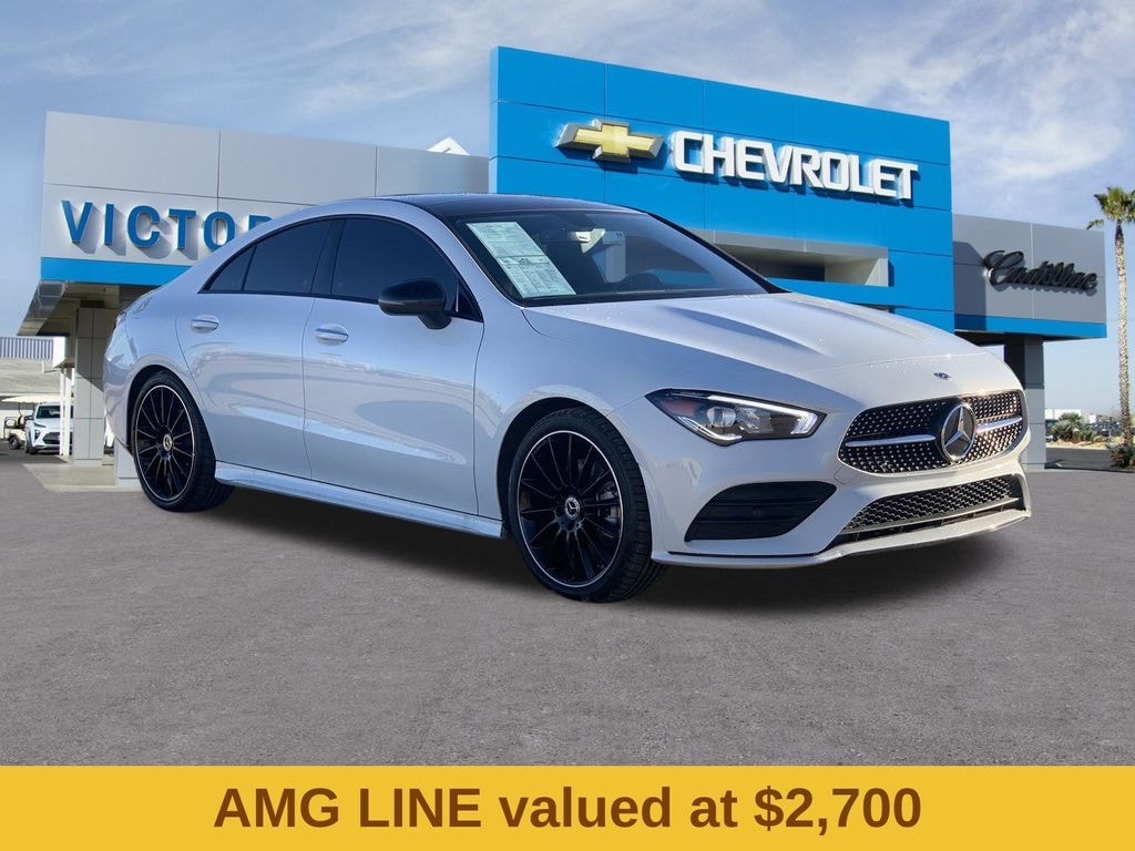 AMG® Line (AMG® Body Styling, Multifunction Sport Nappa Leather Steering Wheel, and Sport Seats w/Fixed Head Restraints), CLA 250, 4D Sedan, 2.0L I4 Turbocharged, 7-Speed Automatic, FWD, Polar White, 18" Multi-Spoke Alloy Wheels, 4-Wheel Disc Brakes, 8 Speakers, ABS brakes, Air Conditioning, Alloy wheels, AM/FM radio, Apple CarPlay®/Android Auto®, Automatic temperature control, Brake assist, Bumpers: body-color, Child-Seat-Sensing Airbag, Delay-off headlights, Driver door bin, Driver vanity mirror, Dual front impact airbags, Dual front side impact airbags, Electronic Stability Control, Emergency communication system: eCall Emergency System, Exterior Parking Camera Rear, Four wheel independent suspension, Front anti-roll bar, Front Bucket Seats, Front Center Armrest, Front dual zone A/C, Front reading lights, Front Sport Seats, Fully automatic headlights, Heated door mirrors, Illuminated entry, Knee airbag, Low tire pressure warning, MB-Tex Leatherette Seat Trim, Memory seat, Occupant sensing airbag, Outside temperature display, Overhead airbag, Overhead console, Panic alarm, Passenger door bin, Passenger vanity mirror, Power door mirrors, Power driver seat, Power moonroof, Power passenger seat, Power steering, Power windows, Radio data system, Radio: MBUX Multimedia System, Rain sensing wipers, Rear anti-roll bar, Rear fog lights, Rear reading lights, Rear seat center armrest, Rear window defroster, Remote keyless entry, Security system, Speed control, Speed-sensing steering, Split folding rear seat, Steering wheel mounted audio controls, Tachometer, Telescoping steering wheel, Tilt steering wheel, Traction control, Trip computer, Turn signal indicator mirrors, and Variably intermittent wipers.