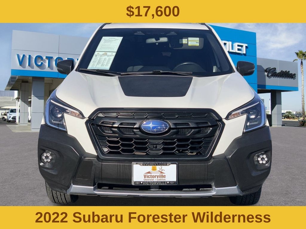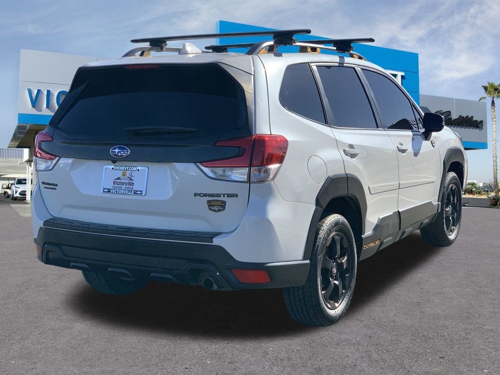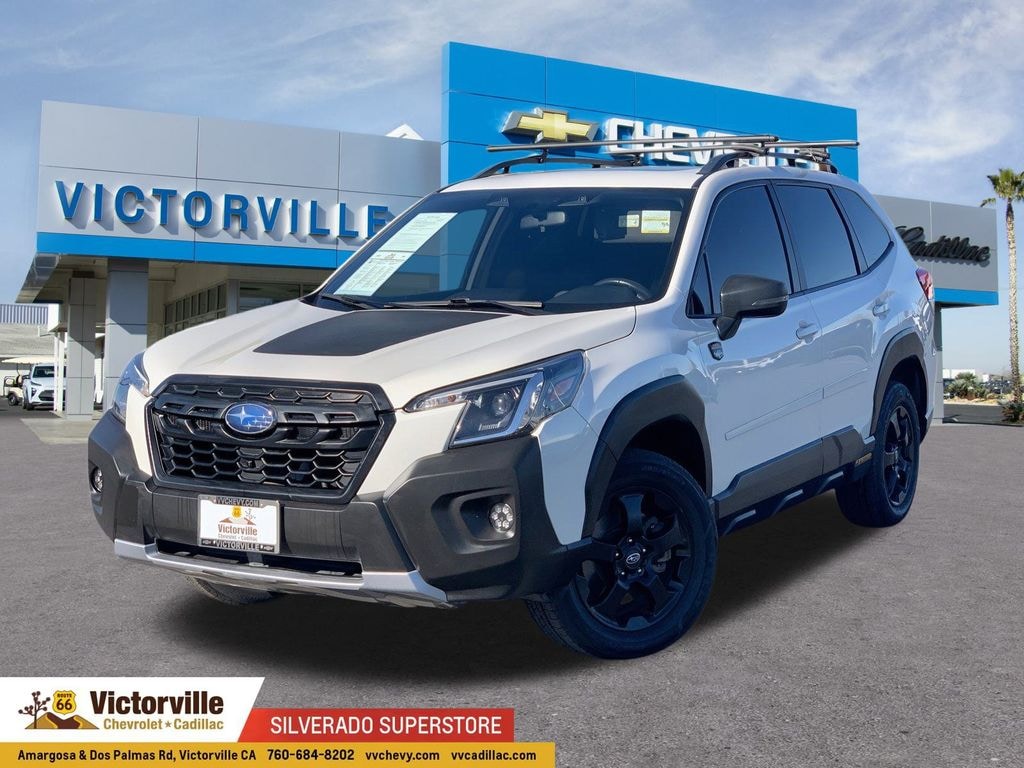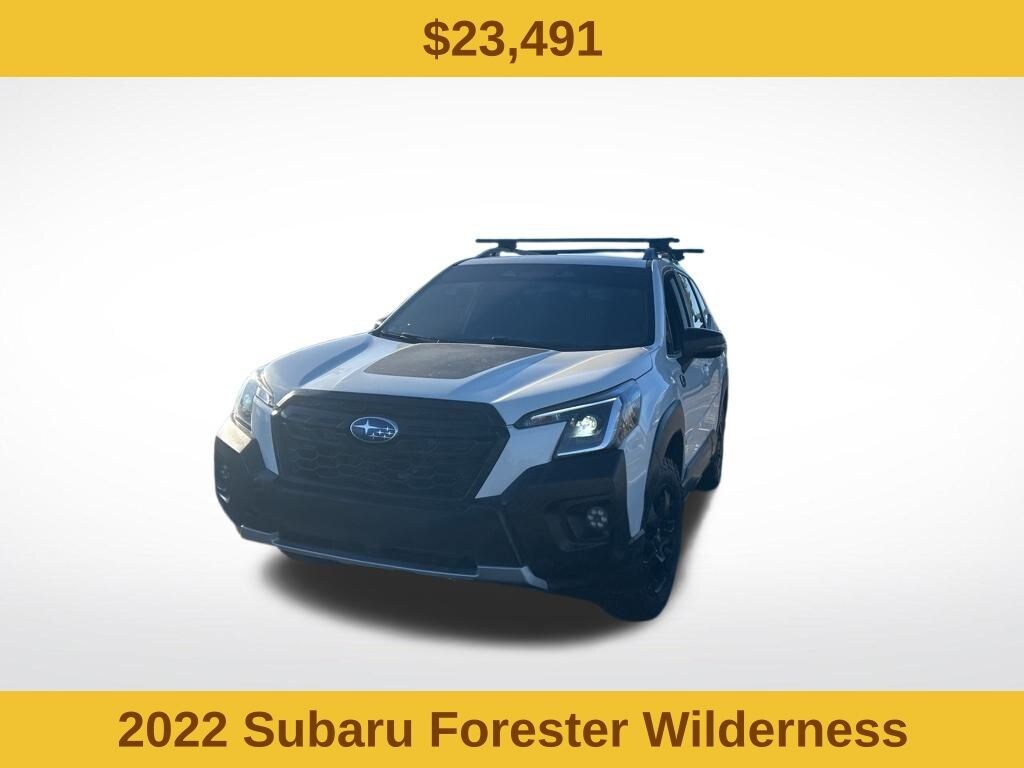 Audio System & Navigation & Power Rr Gate (harman/kardon 576W Amp & Speaker System, Power Rear Gate, and Radio: Subaru Starlink 8.0" Multimedia Nav System), Forester Wilderness, 4D Sport Utility, 2.5L 4-Cylinder DOHC 16V, AWD, Crystal White Pearl, Gray Premium Synthetic, 4-Wheel Disc Brakes, 4.11 Axle Ratio, 6 Speakers, ABS brakes, Air Conditioning, Alloy wheels, AM/FM radio: SiriusXM, Anti-whiplash front head restraints, Auto High-beam Headlights, Automatic temperature control, Brake assist, Bumpers: body-color, CD player, Crystal White Pearl Body Side Molding, Driver door bin, Driver vanity mirror, Dual front impact airbags, Dual front side impact airbags, Electronic Stability Control, Emergency communication system: STARLINK Safety and Security (Subscription Required), Exterior Parking Camera Rear, Four wheel independent suspension, Front anti-roll bar, Front Bucket Seats, Front Center Armrest, Front dual zone A/C, Front fog lights, Front reading lights, Fully automatic headlights, Heated door mirrors, Heated Front Bucket Seats, Heated front seats, Illuminated entry, Knee airbag, Leather Shift Knob, Low tire pressure warning, Navigation System, Occupant sensing airbag, Outside temperature display, Overhead airbag, Overhead console, Panic alarm, Passenger door bin, Passenger vanity mirror, Power door mirrors, Power driver seat, Power moonroof: Panoramic, Power steering, Power windows, Radio data system, Radio: Subaru Starlink 8.0" Multimedia Plus System, Rear anti-roll bar, Rear seat center armrest, Rear window defroster, Rear window wiper, Remote keyless entry, Roof rack: rails only, Security system, Speed control, Speed-sensing steering, Split folding rear seat, Spoiler, STARLINK/Apple CarPlay/Android Auto, Steering wheel mounted audio controls, Tachometer, Telescoping steering wheel, Textured StarTex Upholstery, Tilt steering wheel, Traction control, Trip computer, Turn signal indicator mirrors, Variably intermittent wipers, and Wheels: 17" x 7.0J Matte Black Machine Finish Alloy.