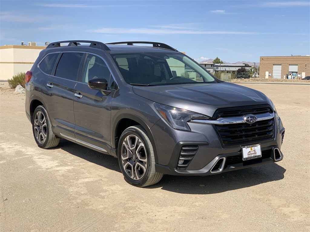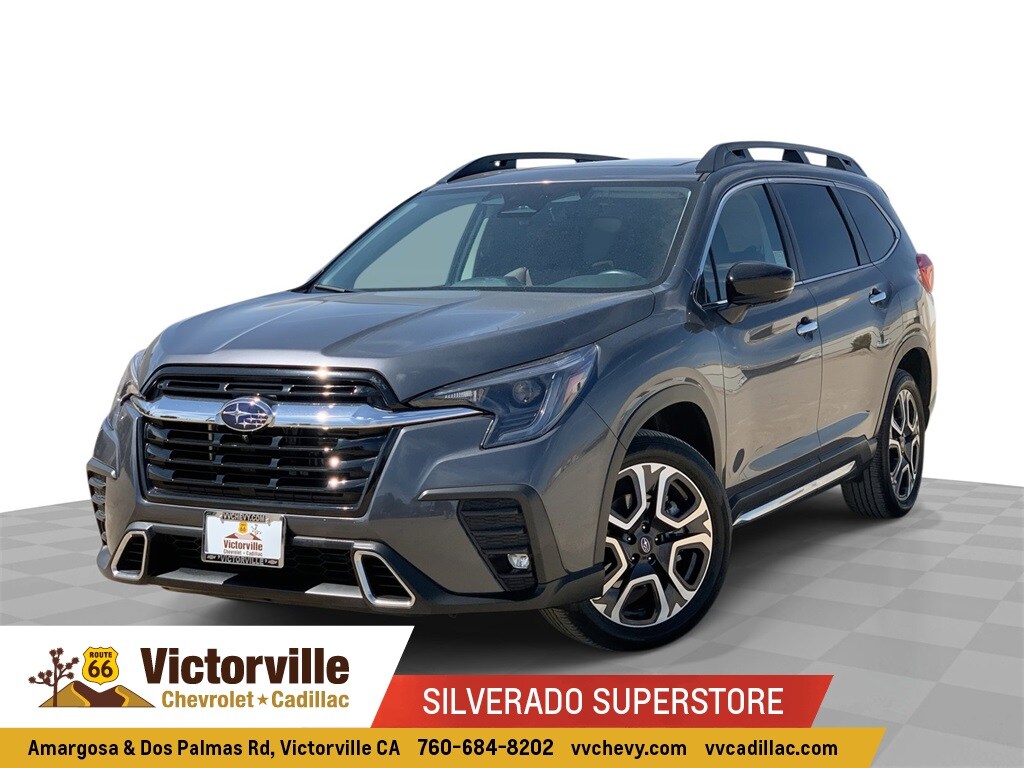 Standard Model, Ascent Touring, 4D Sport Utility, 2.4L 4-Cylinder DOHC 16V, AWD, Magnetite Gray Metallic, Java Leather, 14 Speakers, 2nd Row Captain's Chairs Rear Seatback Protector, 3rd Row Bench Rear Seatback Protector, 3rd row seats: bench, 3rd Row Sunshade, 4-Wheel Disc Brakes, ABS brakes, Air Conditioning, All-Weather Floor Liners, Alloy wheels, AM/FM radio: SiriusXM, Auto High-beam Headlights, Auto-Dimming Exterior Mirror w/Approach Light, Auto-dimming Rear-View mirror, Automatic temperature control, Axle Ratio: 4.44, Brake assist, Bumpers: body-color, Cargo Net, Cargo Tray, Compass, Delay-off headlights, Driver door bin, Driver vanity mirror, Dual front impact airbags, Dual front side impact airbags, Electronic Stability Control, Emergency communication system: STARLINK Safety and Security (Subscription Required), Exterior Parking Camera Rear, Four wheel independent suspension, Front anti-roll bar, Front Bucket Seats, Front Center Armrest, Front dual zone A/C, Front fog lights, Front reading lights, Fully automatic headlights, Garage door transmitter: HomeLink, harman/kardon® Speakers, Heated & Ventilated Front Bucket Seats, Heated door mirrors, Heated front seats, Heated rear seats, Heated steering wheel, HVAC memory, Illuminated entry, Knee airbag, Leather Shift Knob, Leather steering wheel, LED Upgrade, Low tire pressure warning, Memory seat, Navigation System, Occupant sensing airbag, Outside temperature display, Overhead airbag, Overhead console, Panic alarm, Passenger door bin, Passenger vanity mirror, Perforated Nappa Leather-Trimmed Upholstery, Power door mirrors, Power driver seat, Power Liftgate, Power moonroof, Power passenger seat, Power steering, Power windows, Radio data system, Radio: Subaru STARLINK 11.6" Multimedia Nav System, Rain sensing wipers, Rear air conditioning, Rear anti-roll bar, Rear reading lights, Rear window defroster, Rear window wiper, Reclining 3rd row seat, Remote keyless entry, Security system, Speed control, Speed-sensing steering, Split folding rear seat, Spoiler, STARLINK/Apple CarPlay/Android Auto, Steering wheel mounted audio controls, Tachometer, Telescoping steering wheel, Tilt steering wheel, Traction control, Trip computer, Turn signal indicator mirrors, Variably intermittent wipers, Ventilated front seats, Wheels: 20" x 7.5 J Dk Gray Alloy w/Machine Finish, Windshield Sunshade, and Wireless Charger.
