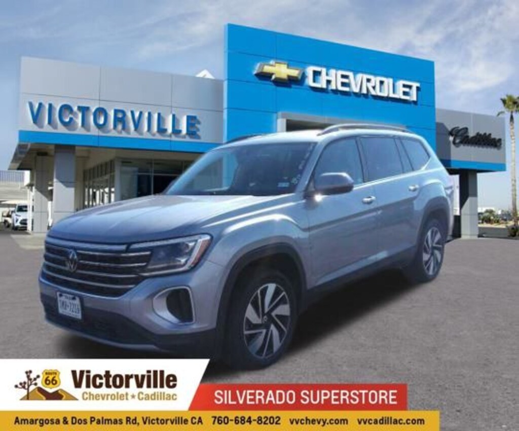 Atlas 2.0T SE w/Technology, 4D Sport Utility, 2.0L TSI, 8-Speed Automatic with Tiptronic, FWD, Silver Mist Metallic, 3.60 Axle Ratio, 3rd row seats: split-bench, 4-Wheel Disc Brakes, 6 Speakers, ABS brakes, Air Conditioning, Alloy wheels, AM/FM radio: SiriusXM with 360L, Auto-dimming Rear-View mirror, Automatic temperature control, Brake assist, Bumpers: body-color, Compass, Delay-off headlights, Driver door bin, Driver vanity mirror, Dual front impact airbags, Dual front side impact airbags, Electronic Stability Control, Emergency communication system: VW Car-Net Safe & Secure 5-year, Exterior Parking Camera Rear, Four wheel independent suspension, Front anti-roll bar, Front Bucket Seats, Front Center Armrest, Front dual zone A/C, Front fog lights, Front reading lights, Fully automatic headlights, Heated door mirrors, Heated front seats, Heated steering wheel, Heated/Actively Ventilated Front Bucket Seats, Illuminated entry, Low tire pressure warning, Occupant sensing airbag, Outside temperature display, Overhead airbag, Overhead console, Panic alarm, Passenger door bin, Passenger vanity mirror, Perforated V-Tex Leatherette Seating Surfaces, Power door mirrors, Power driver seat, Power Liftgate, Power steering, Power windows, Radio data system, Radio: MIB3 Composition Media, Rain sensing wipers, Rear air conditioning, Rear anti-roll bar, Rear reading lights, Rear seat center armrest, Rear window defroster, Rear window wiper, Remote keyless entry, Security system, Speed control, Speed-sensing steering, Split folding rear seat, Spoiler, Standard Suspension, Steering wheel mounted audio controls, Tachometer, Telescoping steering wheel, Tilt steering wheel, Traction control, Trip computer, Turn signal indicator mirrors, Variably intermittent wipers, Ventilated front seats, and Wheels: 20" 2-Tone Machined Alloy.